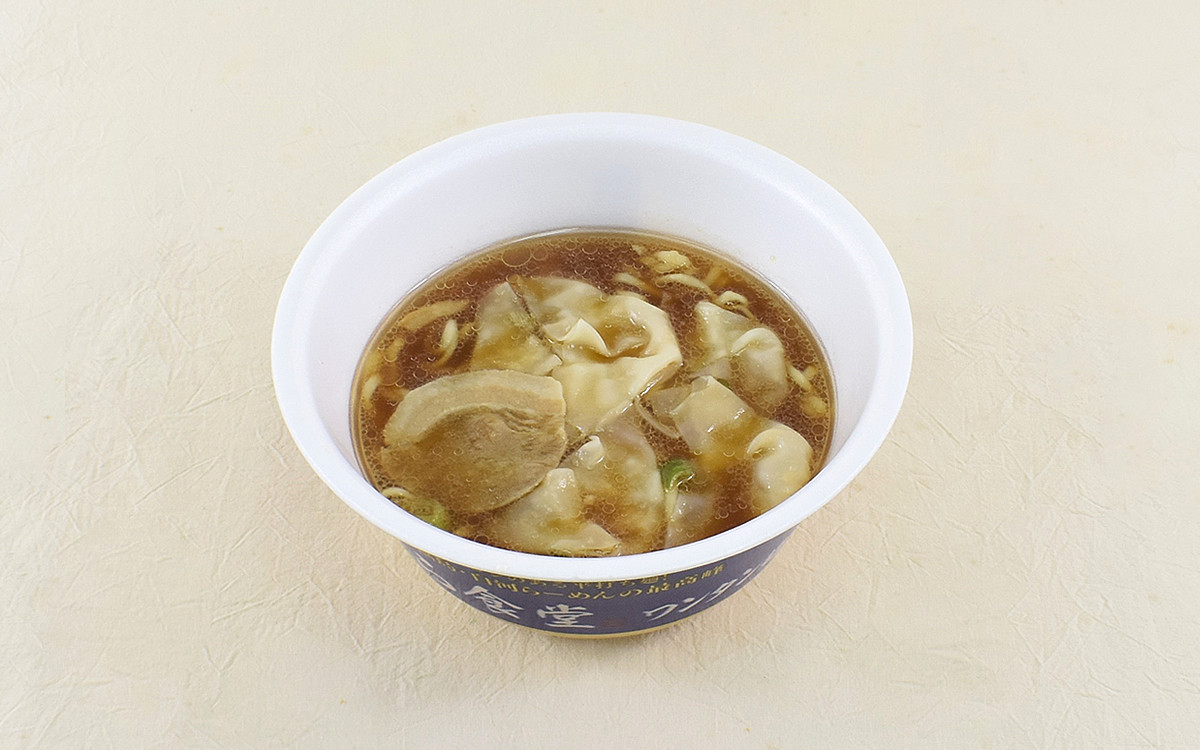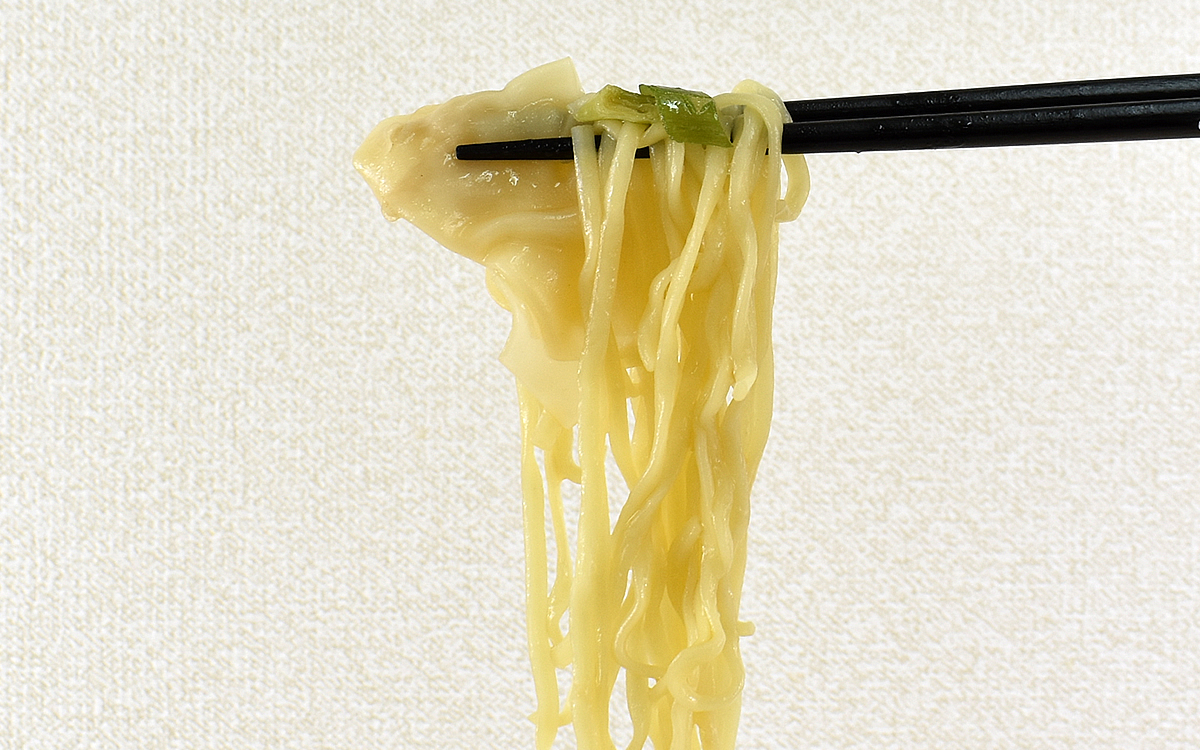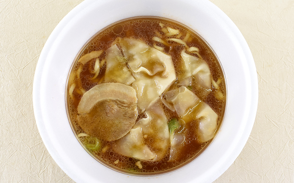 もともとの食感に加えて、ワンタンの口あたりをよりなめらかにしている要因がスープにあります。醤油ベースの芳醇な香りを漂わせるスープは油の加減もほどよく、ワンタンや麺の表面をコーティング。またチキンエキスやポークエキスのコクもしっかり効いていて、どこか懐かしさを覚える風味に思わず「ホッ」。