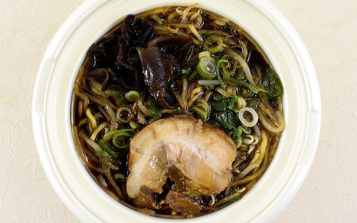 国民的アニメのキャラクターを連想させる「いそのかづお」は、ラーメン激戦区として有名な札幌・すすきのに位置する専門店。鶏ガラと昆布がベースの醤油ラーメン「札幌ブラック」が多くのファンに愛され、“深夜のみ”の一風変わった営業形態ながら行列の絶えない人気店です。ちなみに今回セレクトした「札幌ブラック醤油ラーメン」は、セブン-イレブンが展開するフェア「北海道グルメ旅」にラインナップされた商品でもあります。