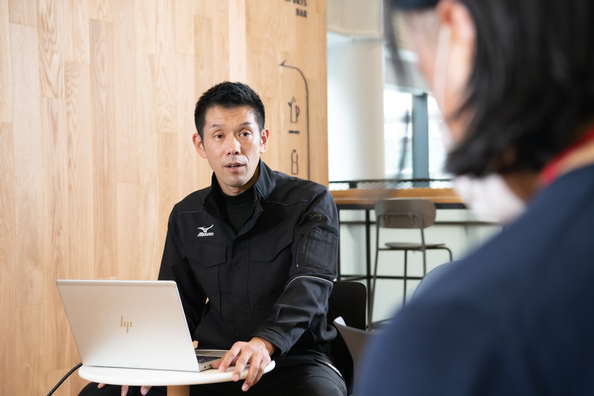 なるほど、「ミズノミライビジョン」は、これからのミズノのモノやサービスづくりの指標となる、ミズノ版SDGsとも言えよう。佐藤さんによるMIZUNO ENGINEの設立経緯を聞けたところで、いよいよ体験取材の始まりである!