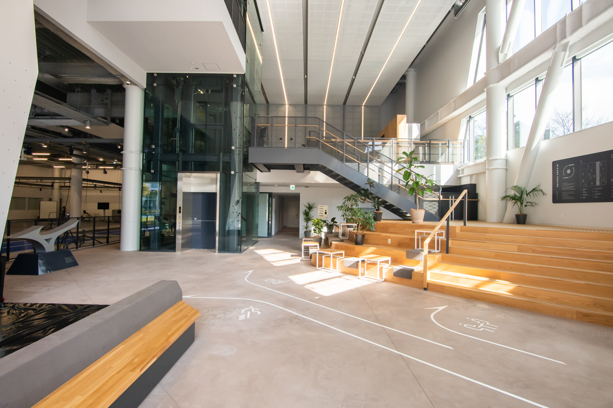 大阪・南港でひときわ目立つ、日本が誇る総合スポーツ用品メーカーミズノ大阪本社ビル。このビルに隣接して、2022年11月イノベーションセンター「MIZUNO ENGINE(ミズノエンジン)」が誕生した。MIZUNO ENGINEは、ミズノの商品やサービスの研究開発を強化するイノベーションの拠点。まさに、ミズノのモノづくりのエンジンとなる施設である。