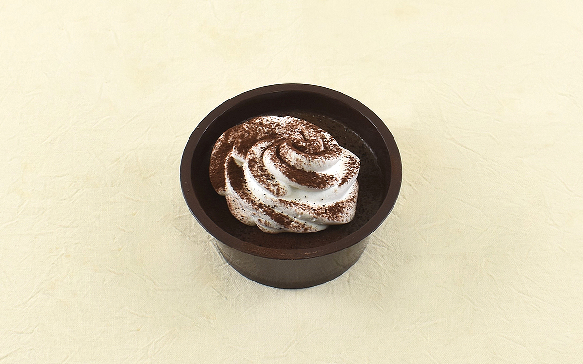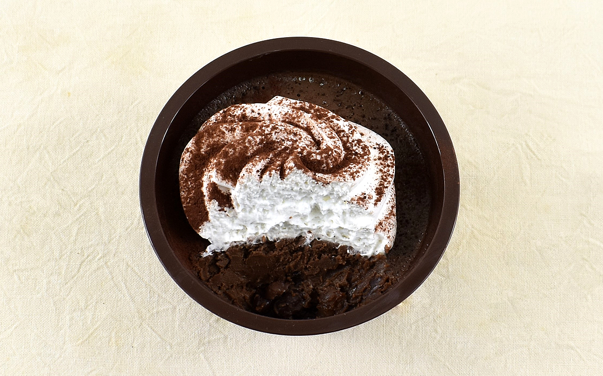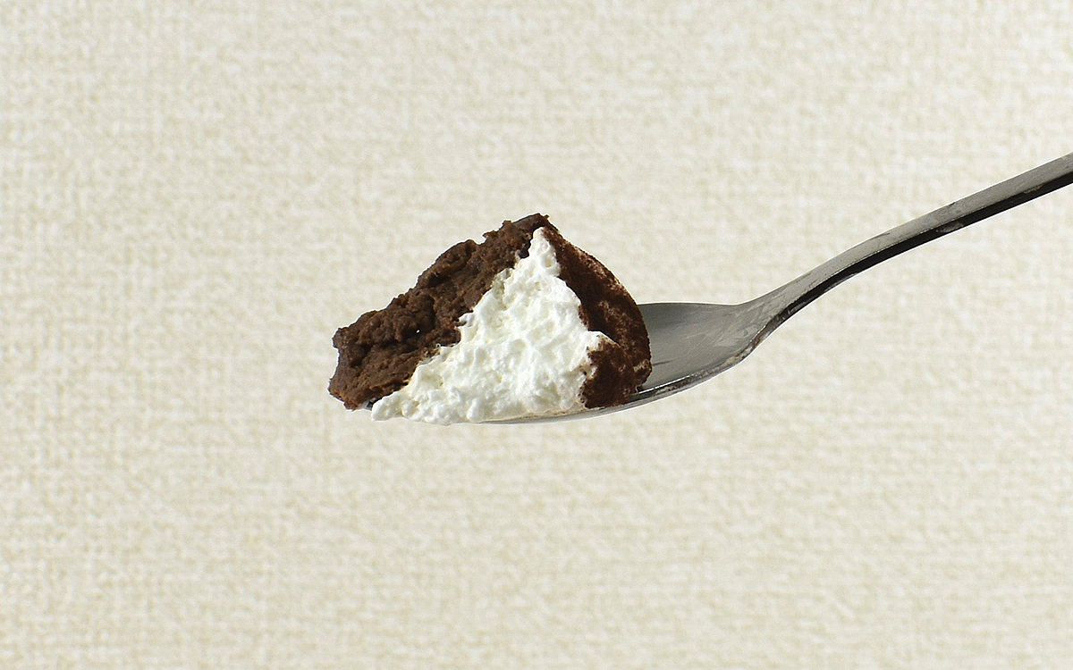 1年以上も試行錯誤をくり返し、ようやく完成したという同商品。さっそくココアパウダーがまぶされたホイップクリームから一口いただいたところ、やさしい甘みがじんわりと広がっていきました。ホイップクリームの持ち味を削ぐことのないココアパウダーの風味も繊細で、トッピングの段階からじわじわと満足感がこみ上げてくることに…。