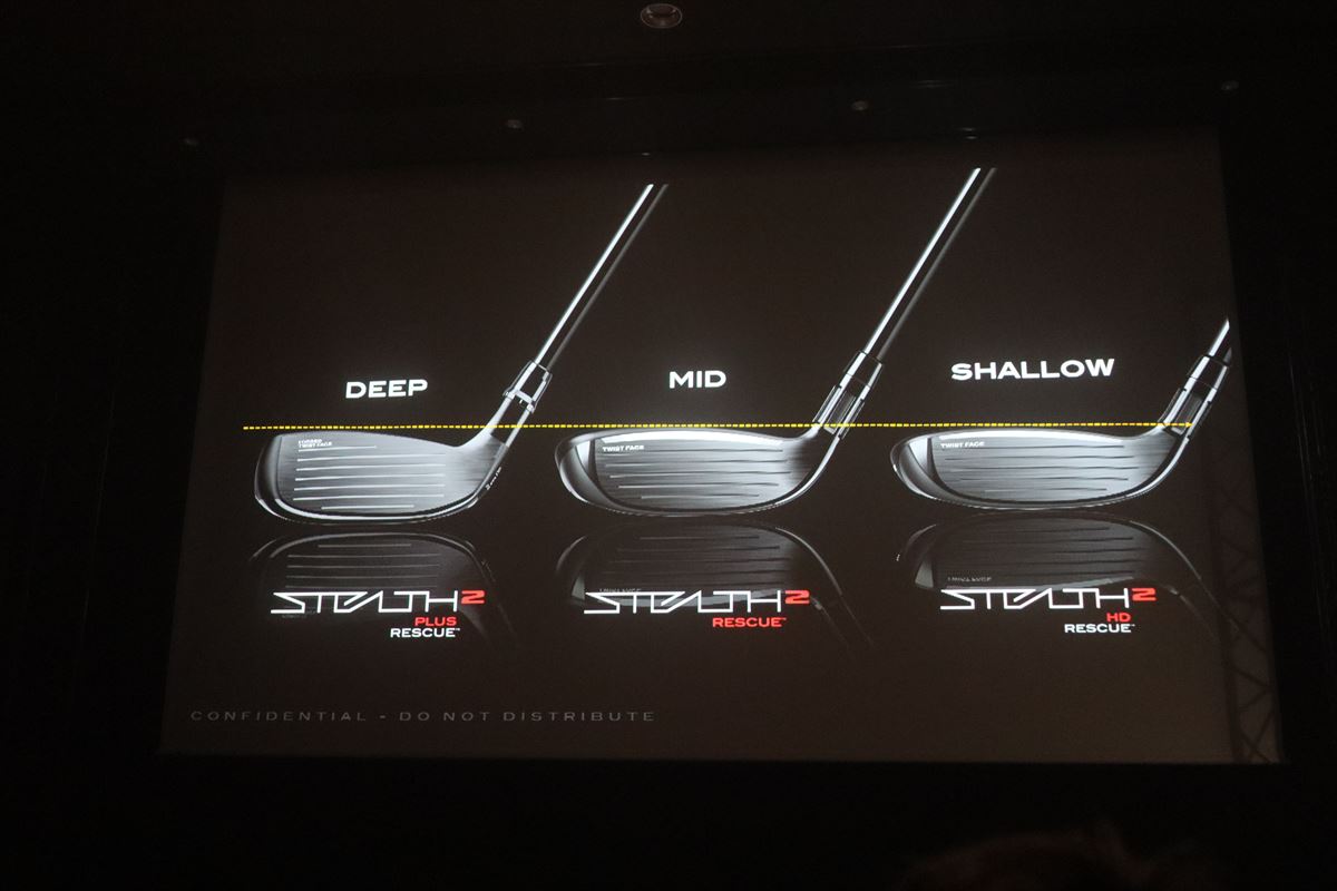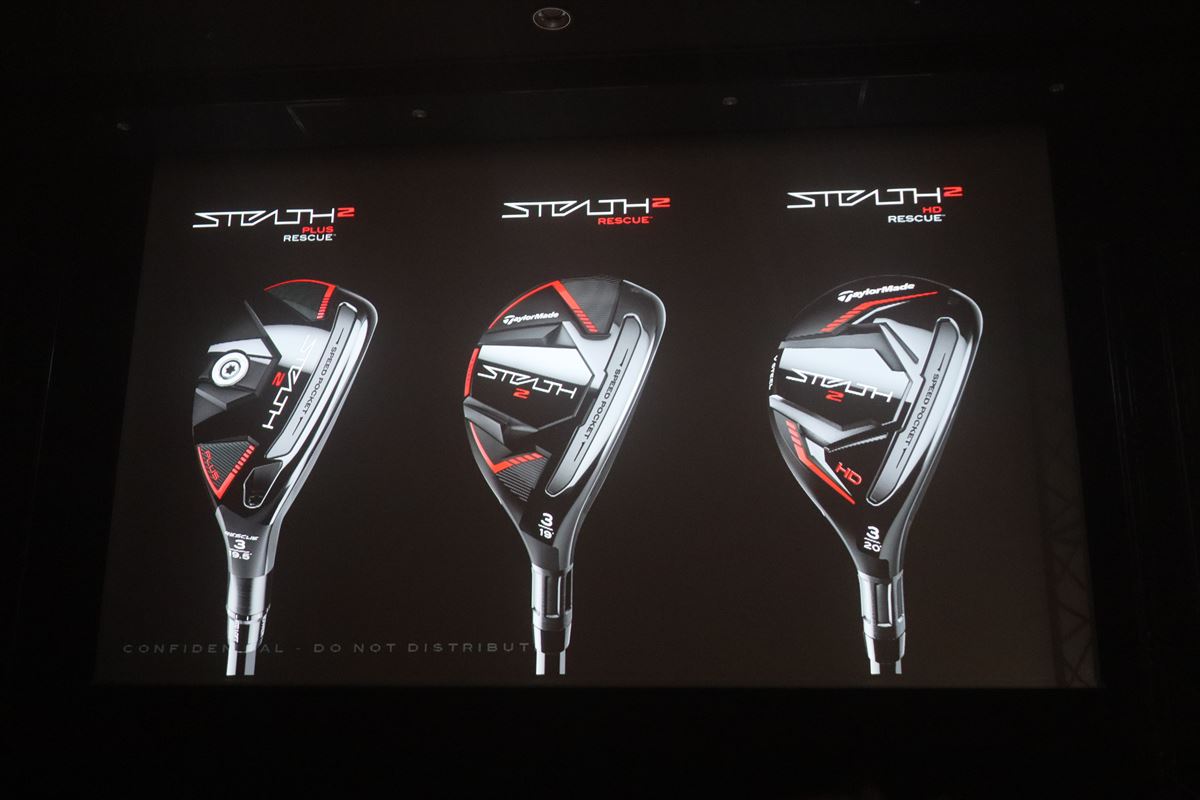 レスキューに関しては、従来のアイアン型の新製品「ステルス2 プラス レスキュー」とウッド型の新製品「ステルス2 レスキュー」に加え、こちらもHDシリーズが新たにラインアップしました。ハイロフト設計、ボールが上がりやすく左右のミスに強いシャローヘッド設計、および低重心化でより高く大きく飛ばすことができます。