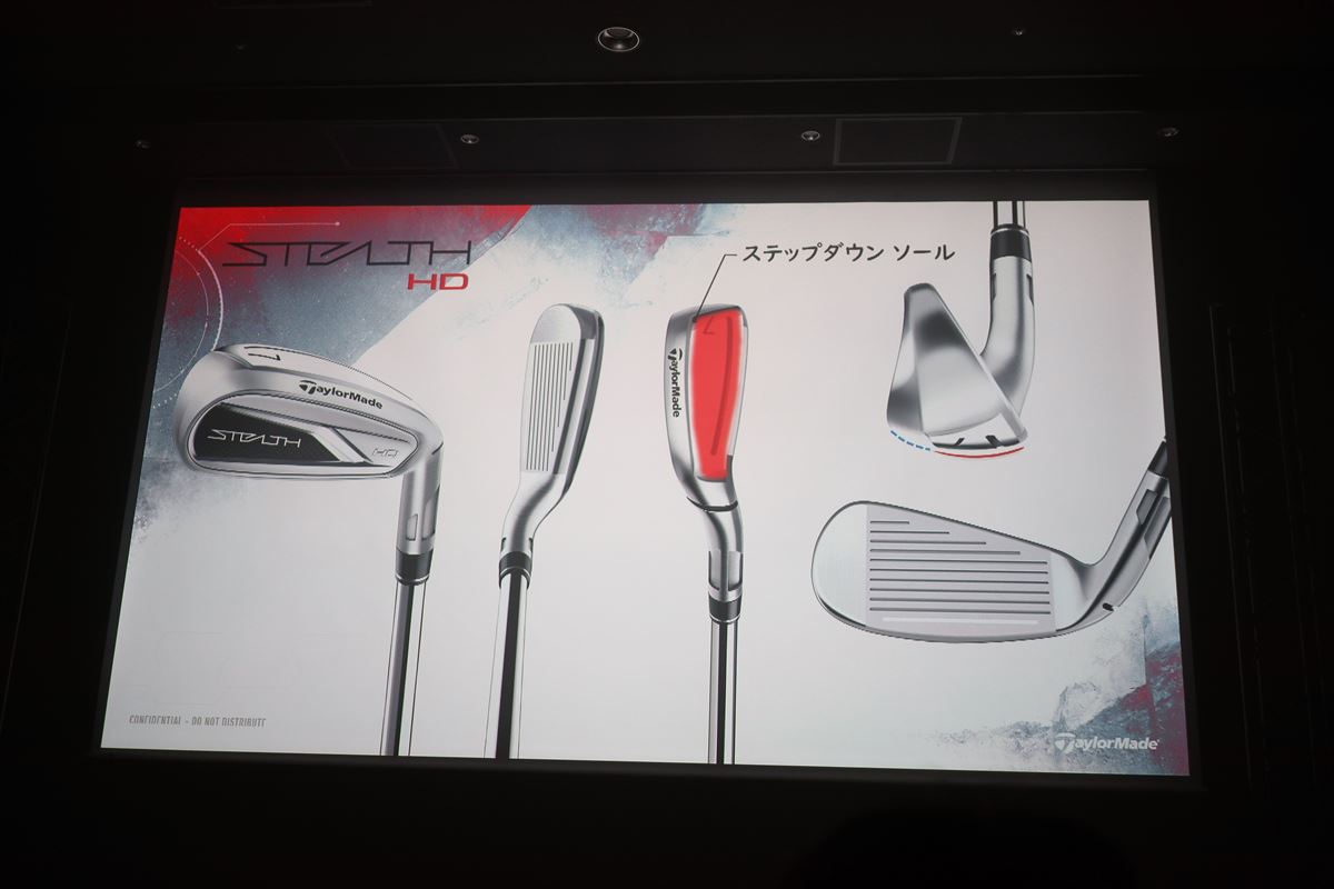 「ステルス HD アイアン」(6番~PWの5本セットで13万7500円/12万1000円)は、ソールの幅が拡大したワイドソールを採用、重心を低く、後ろにもっていくことで、高弾道でバックスピン量の多い打球を打ち出せるようになっています。また、継続販売となる上位モデルの「ステルス アイアン」に比べて5番からピッチングまでのロフト角を大きくし、高く“上がる”ようにしています。なお、アイアンもHDモデルはシャローヘッド設計を採用しています。