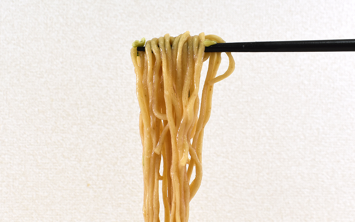 ちなみに同商品に使用されている麺は全粒粉入り。茶色い色味の麺に小さな粒が埋もれていて、従来の乾燥麺とは一味違ったコクを感じさせてくれるのが特徴です。スープはもちろん、味つき豚肉の旨味やねぎの甘い味わいとも相性バッチリ。