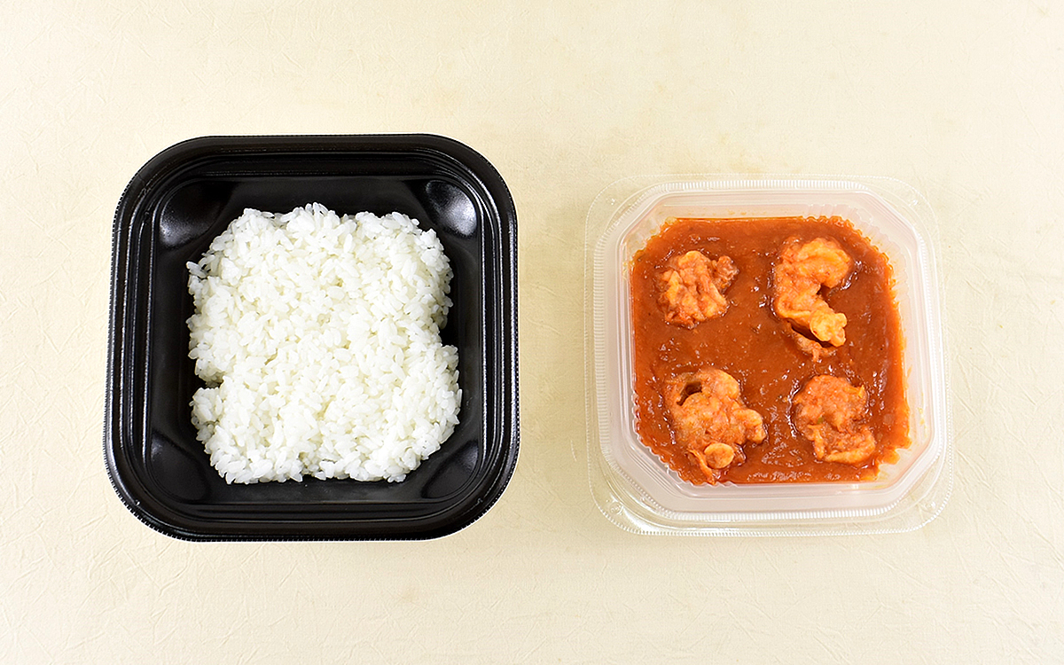 さっそくレンジで加熱調理(目安時間 500Wで2分30秒)をおこなったところ、チリソース特有のこうばしい香りが部屋中に拡散。ソースに半分沈んでいても存在感をアピールしてくる4尾の海老の身に目が引き寄せられます。具材をご飯に重ねてソースからいただくと、辛味よりも早く甘みが口の中へ広がることに。「あれ? 辛くない?」と首を傾げた瞬間、チリソース特有の刺激がじわじわと沸き起こってきました。