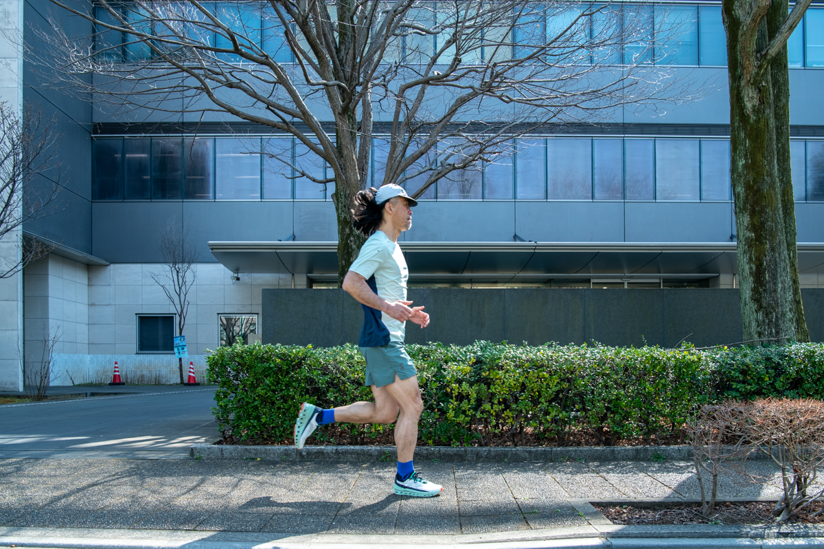 後編では、実際に、履いて、走って、そのインプレをお届けする。なお、この連載では、全てのランニングシューズを、次の4つのシーンを想定してインプレを行っている。まずは、シューズに足を入れた感覚およびウォーキングのインプレ。そして、「運動不足解消」が目的で走る、1㎞を約7分(=キロ7分)の、の~んびりペース。