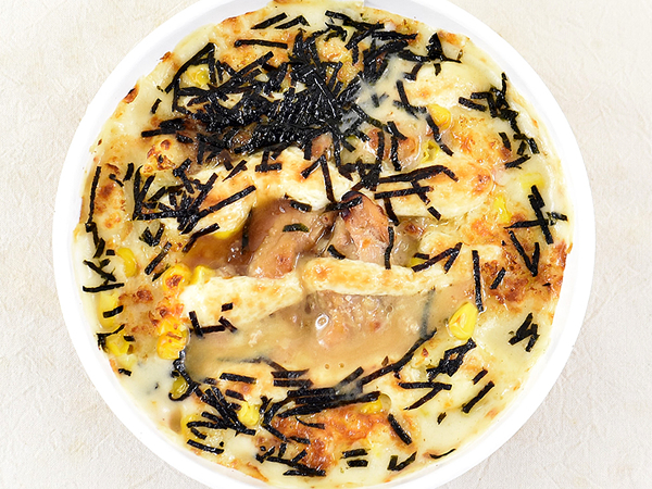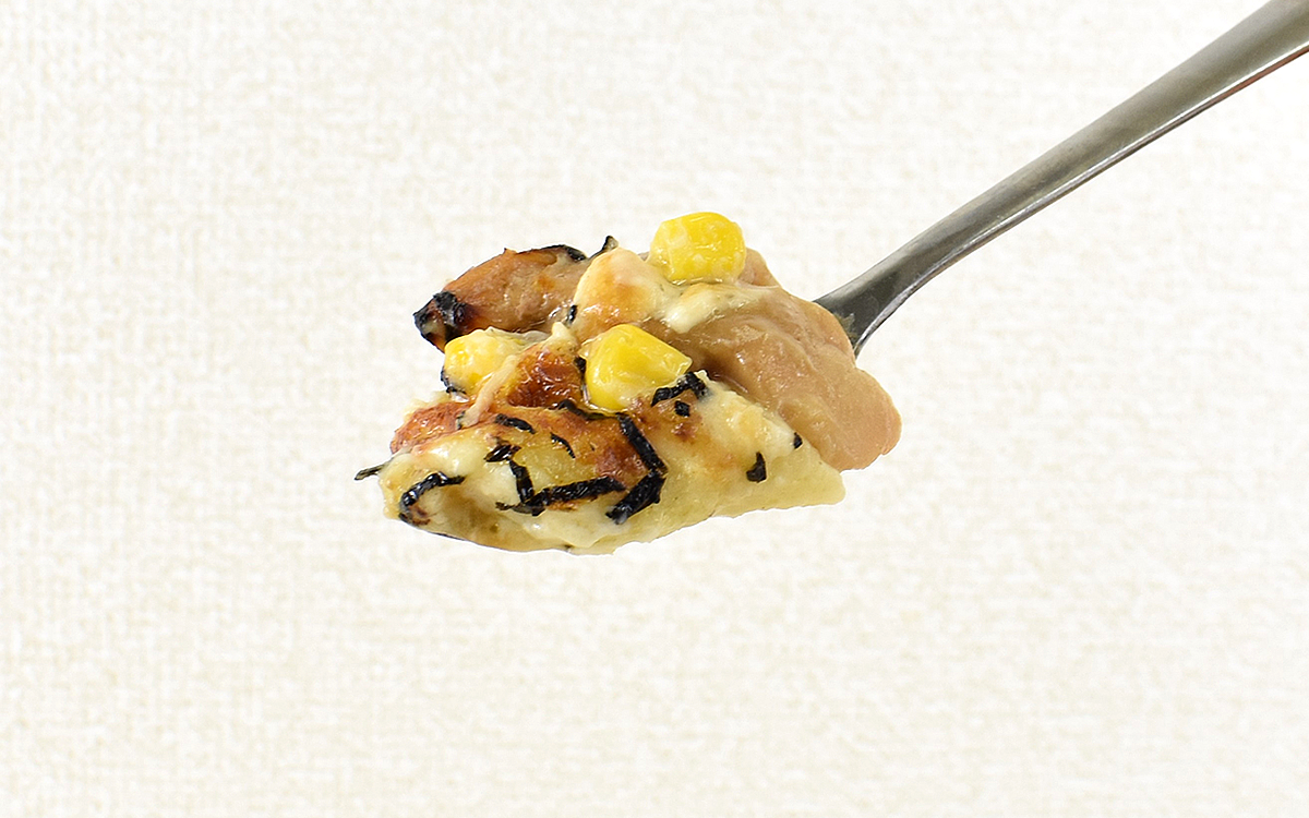 濃厚な味わいを感じる一方で、意外なほどアクセントの役割を果たしているのが表面に散らばった無数の刻み海苔。徐々に広がっていく海苔の香りは照焼きチキンやタレと相性が良く、グラタンのコクに豊かな風味をプラスしてくれました。