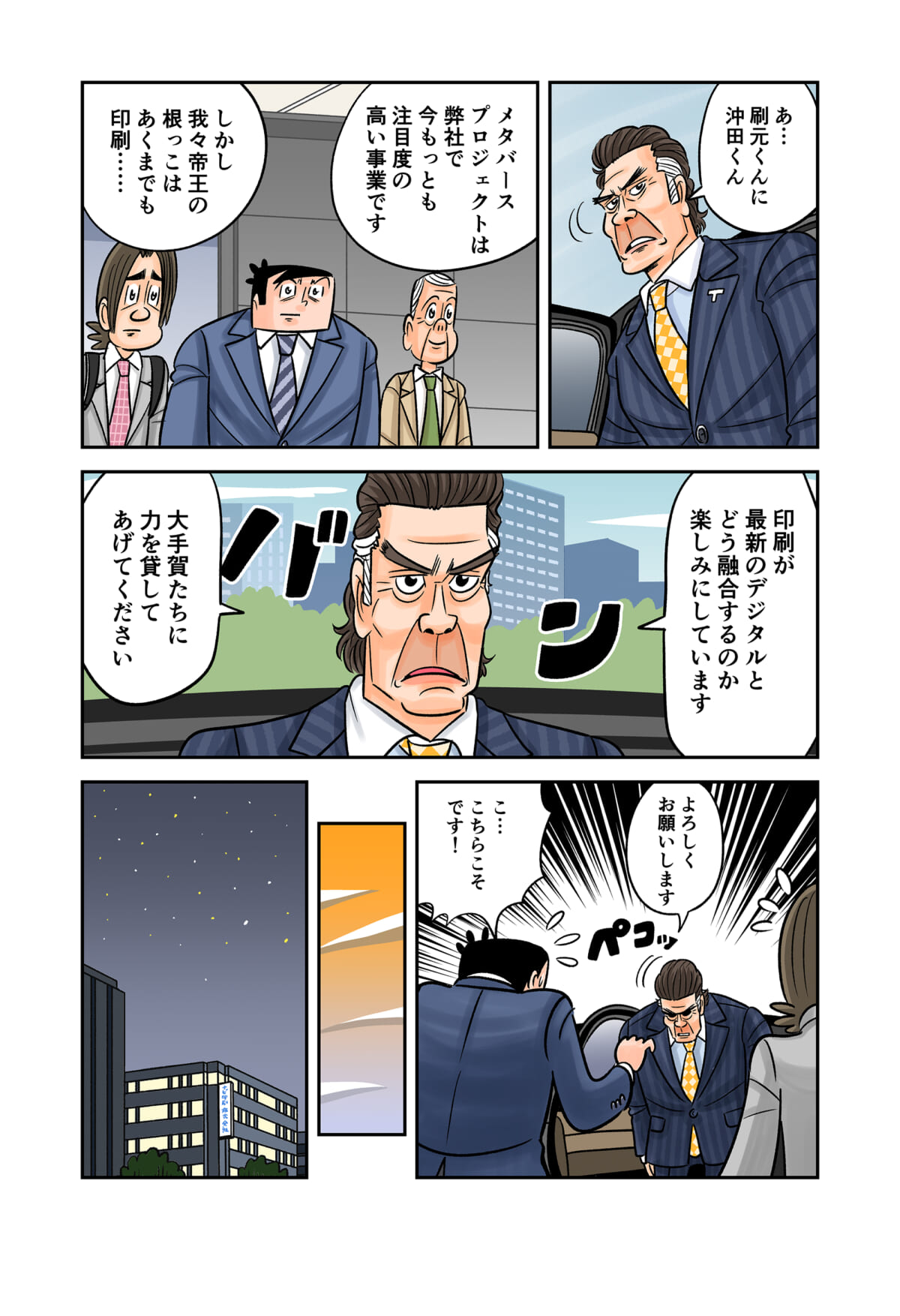 「印刷業界」の裏側をテーマにしたマンガ「今日も下版はできません! 」。ナビ印刷株式会社の営業マン・刷元 正(スリモト・タダシ)と沖田功人(オキタ・コウト)が印刷業界にまつわる「あるある」を、涙あり、「なるほど」や「へぇ~」ありで語っていきます。