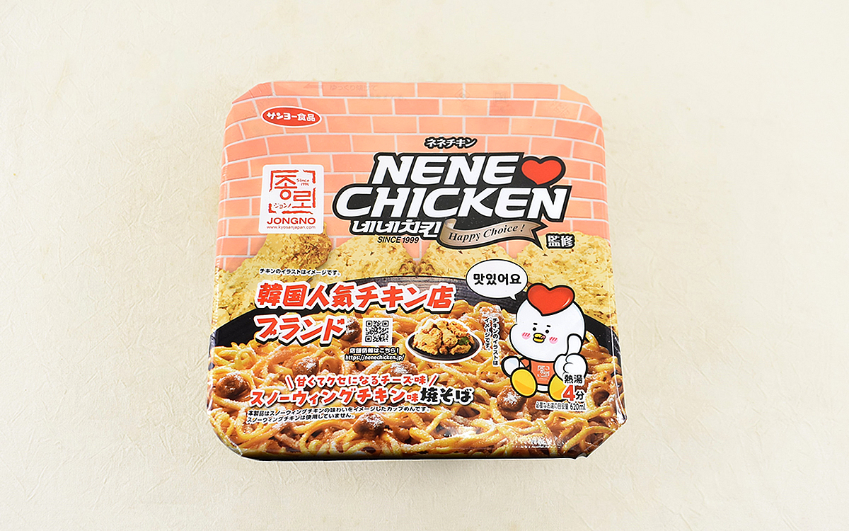 同商品はローソンと韓国の有名店によるコラボカップ麺の第1弾商品で、「ネネチキン」とは2020年1月に日本1号店がオープンしたチキンチェーンのこと。ノーマルなフライドチキンや定番のヤンニョムチキンなど全9種類の味を揃え、約3年で日本国内に52店舗展開するほどの人気を誇ります。今回選んだ商品は、同店オリジナルフレーバーで看板メニューの「スノーウィングチーズチキン」をカップ麺で再現。チーズチキン味の焼そばとはいったい…。