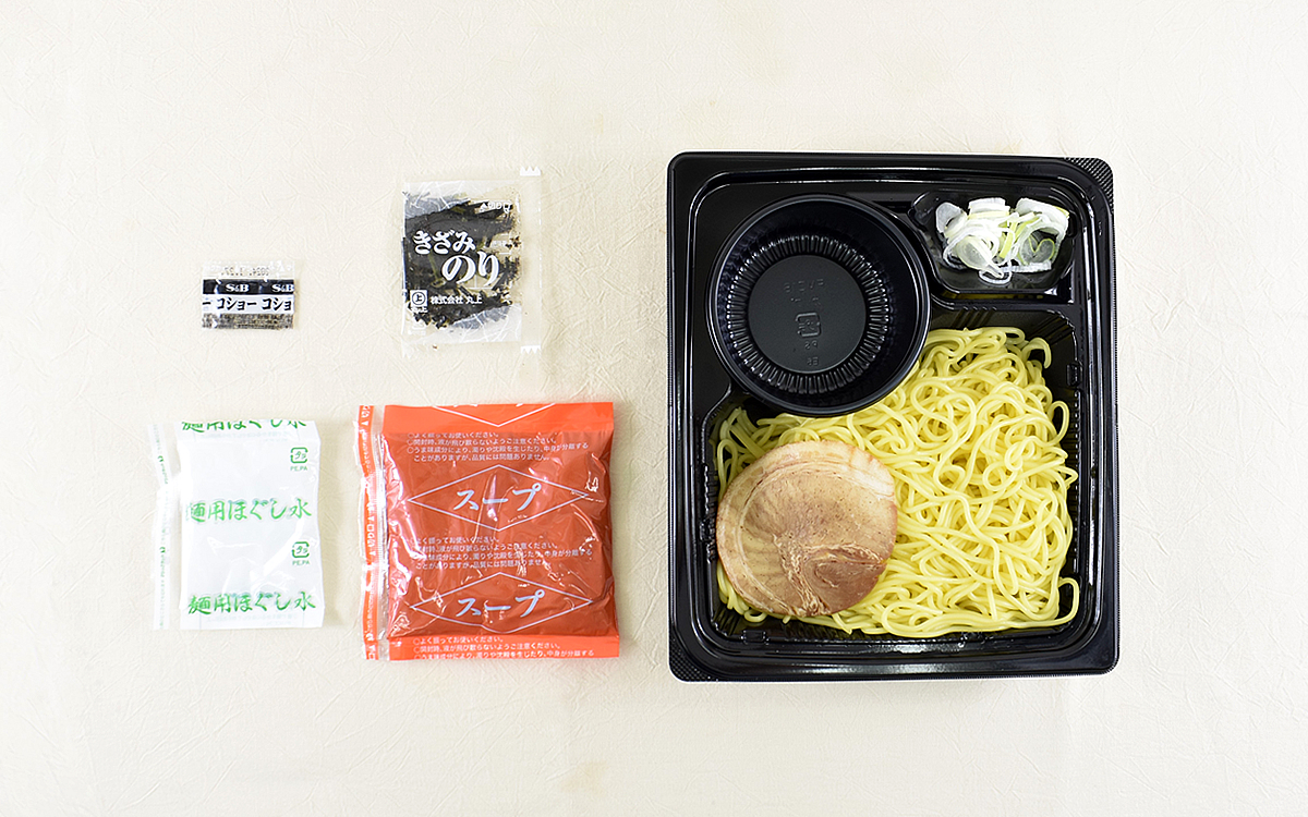 パッケージにはスープ・きざみのり・コショーとともに、固まりがちな中華麺用のほぐし水も同封。さっそく麺をほぐし、スープはもともとトレイ内に収まっている容器に移し替えます。その瞬間からごま油の芳醇な香りが漂ってきて、早くも商品名に納得。期待を膨らませながら麺をつけていただいたところ、コクのあるつゆの味わいが一気に口の中を駆け抜けていきました。