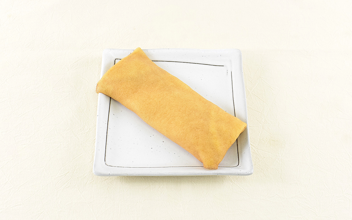 パッケージから取り出したクレープは長方形に折りたたまれていて、生地のこうばしい香りがふわり。試しに指で触れてみたところ、ひんやりした感触とともにきめ細かな生地の触り心地に驚かされます。まずは一口いただいてみると、商品名に相応しい生地のもちもち食感が広がることに。香りに負けないクレープ生地特有の甘みが濃厚で、早くも「もっちりクレープ」の魅力を実感した気分です。