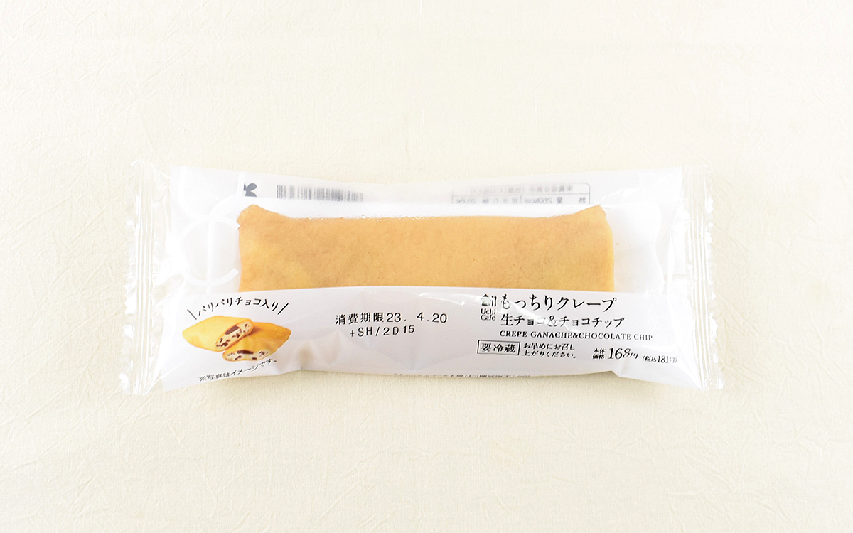 スイーツ好きでなくても購入する機会が多いクレープは、こうばしい生地やクリームなどのトッピングが大きな魅力。中身は素材によって食感が変わるため、無限の楽しみがありますよね。コンビニでも気軽にゲットできる商品ということで、今回はローソンで販売されている「もっちりクレープ 生チョコ&チョコチップ」(181円/税込)をセレクト。商品名がすべてを語っていますが、どのような味わいを楽しませてくれるのかチェックしていきましょう。