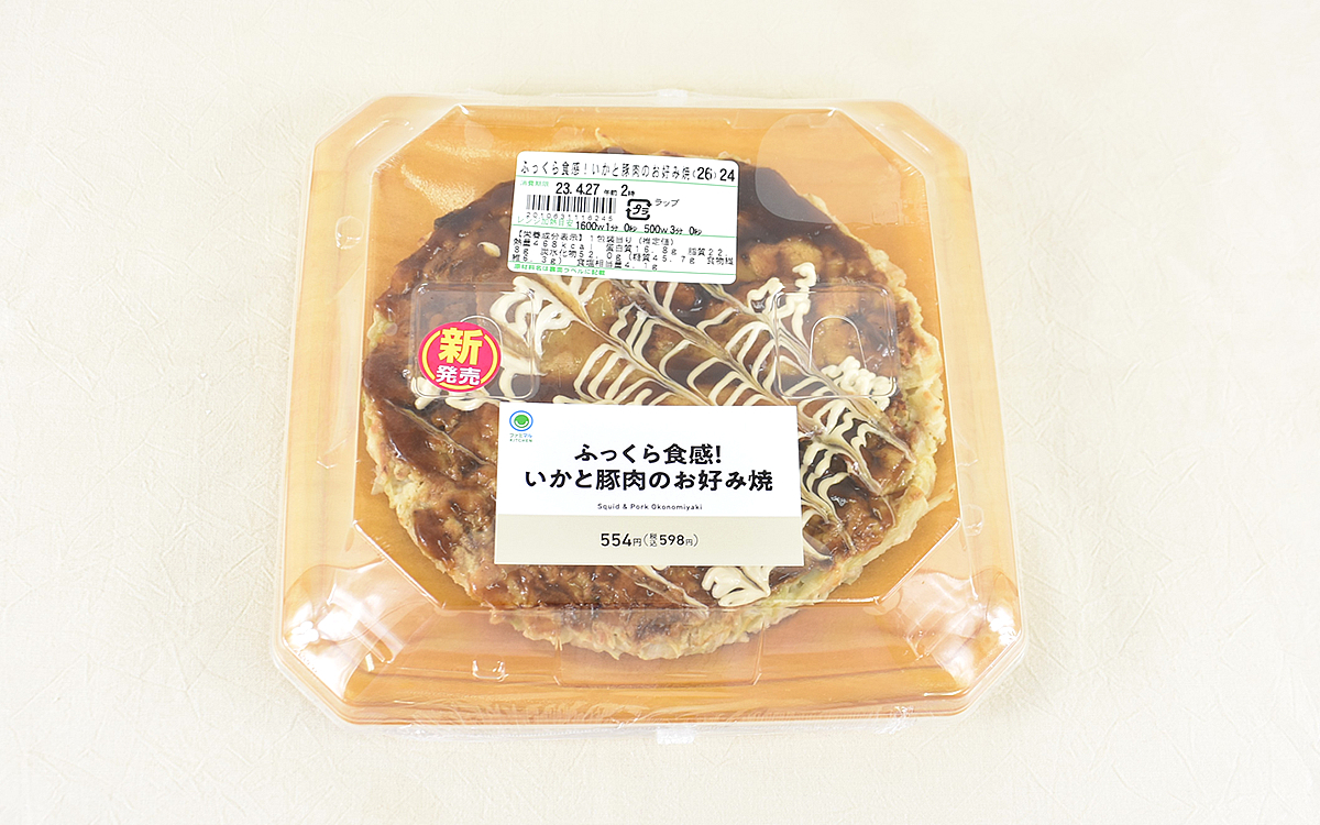 とはいえ忙しいときは、コンビニ弁当でサっと手軽にいただくのも1つの手段ですよね。そこで今回は、ファミリーマートで販売されている「ふっくら食感! いかと豚肉のお好み焼」(598円/税込)に注目してみました。