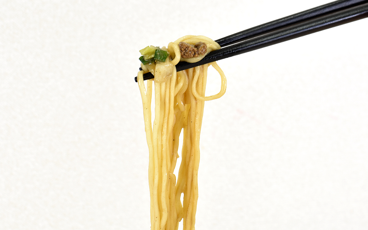 煮干の風味にばかり気を取られてしまいますが、具材(肉そぼろ・玉ねぎ・ねぎ)にも目を向けてみましょう。肉そぼろは噛んだ瞬間じゅわっと広がる旨みが煮干の風味に重なり、玉ねぎ特有のさわやかな甘みもスープにしっかりマッチ。玉ねぎに比べると控えめながら、ねぎの香りもアクセントとして活きていました。