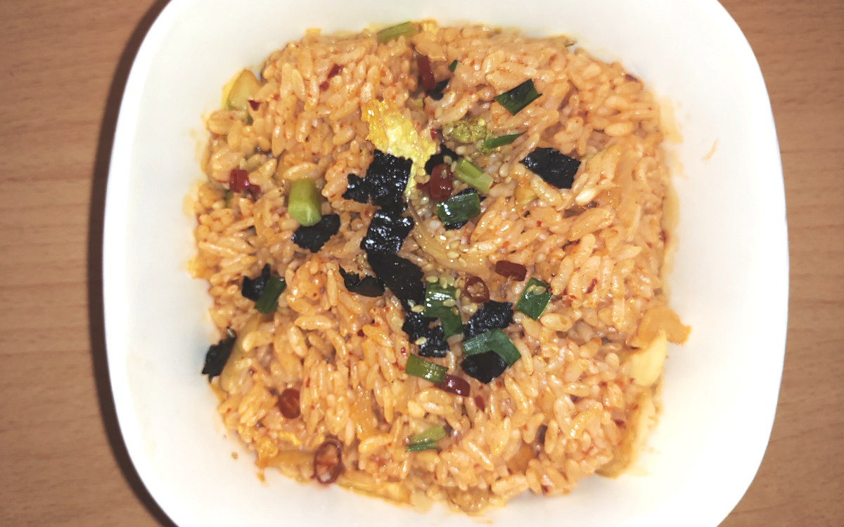 まずはレンジで加熱調理(500wで2分30秒)。温め終えて蓋を開けると、ふわっと香ばしいごま油の香りが漂ってきます。さっそく一口頂くと、ガツンとした辛さがやってきました。しかし、ただ辛いだけではありません。ヤンニョムの旨みと辛さが絶妙なバランスで感じられます。