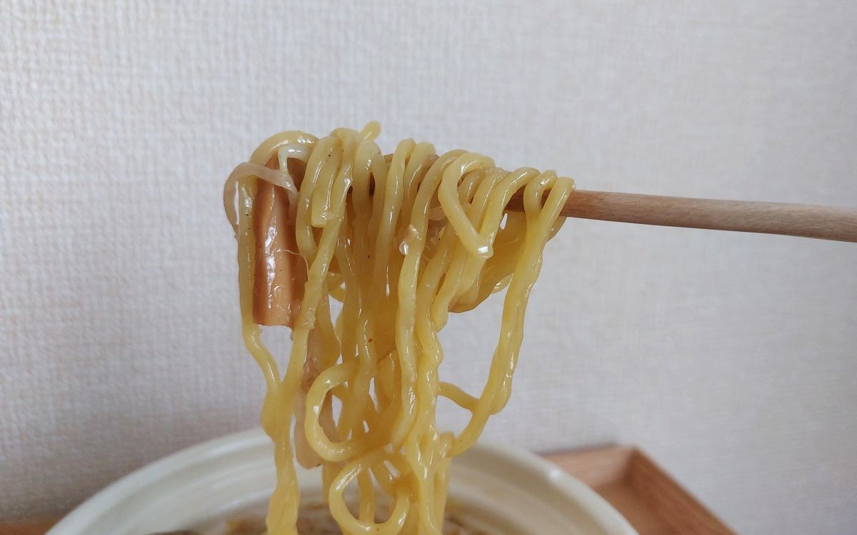 フタをしたまま、レンジで加熱調理(500Wで5分30秒)をおこないます。レンジのドアを開けた瞬間から、ふんわりと生姜の良い香りが。フタを開けると濃厚な味噌の香りも相まって、食欲をそそります。セブン-イレブンのチルド麺は、スープと麺・具材が別々になっているところにこだわりを感じますよね。熱々のスープの中に麺と具材を入れ、軽くほぐしてからいただきます。