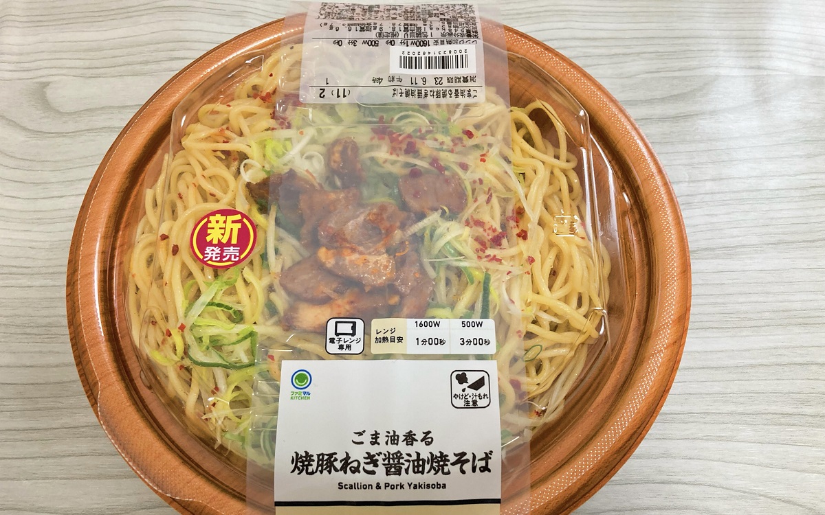今回注目したファミリマートの「ごま油香る焼豚ねぎ醤油焼そば」(498円/税込)は、ごま油の香りがアクセントになったこってり系の醤油焼そば。ガッツリお腹を満たしてくれそうな商品名に惹かれて購入してみました。