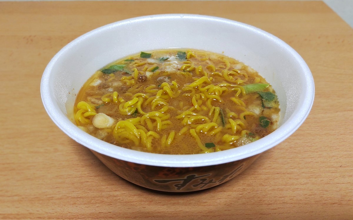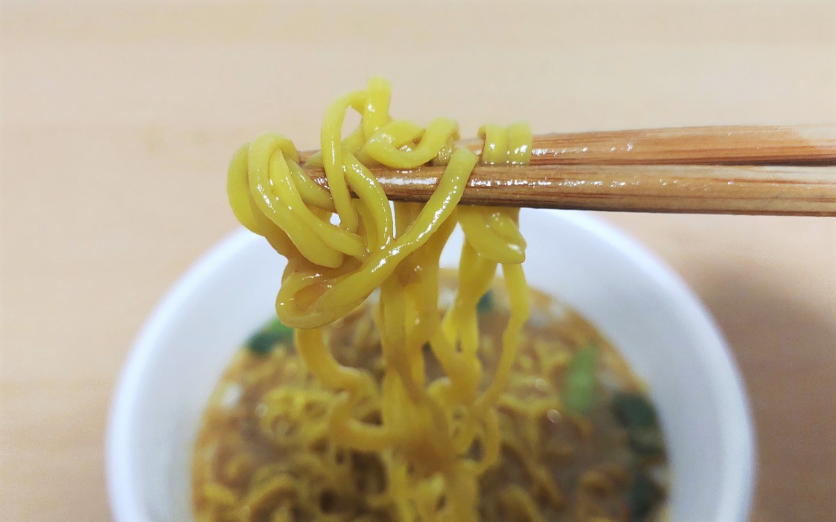 さっそくスープを一口頂くと、濃厚な味噌のコクが口の中に拡がりました。スープはにんにくの風味が効いており、脂の旨味もしっかりと凝縮されています。濃厚かつ芳醇な味わいが思わずやみつきになりますよ。スープの深みはカップラーメンとは思えないほどで、本当にお店でラーメンを食べているような感覚です。