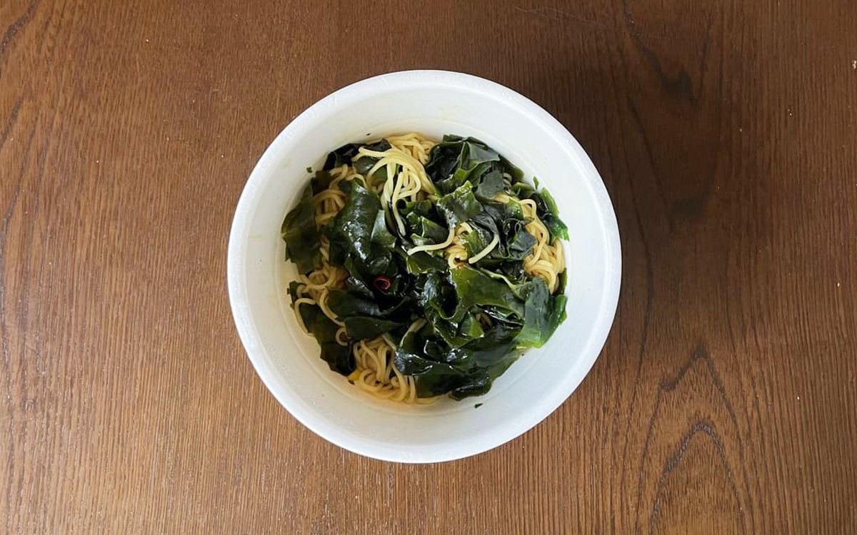 麺が少なめなのではじめは「お腹いっぱいにならないのでは?」と思っていましたが、わかめにしっかりと歯ごたえがあるため食べ終わる頃には満腹感を得られました。ダイエット中でもご飯は抜きたくないときや、ガッツリ系のカップ麺を食べたいけれど摂取カロリーも気にしたいという際には特にオススメです。
