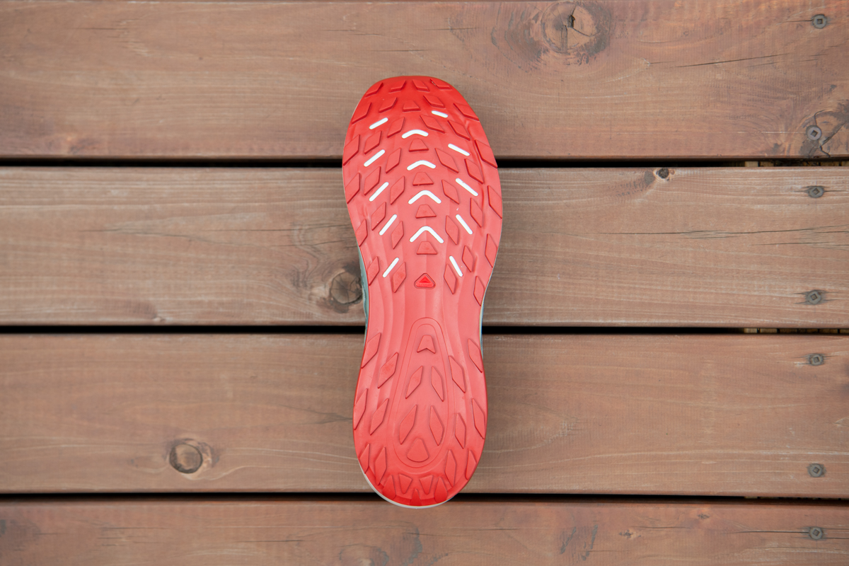また、アウトソール(靴裏)には、粘着性が高く、ラグ(凸部)を付けた「コンタグリップ」と呼ばれるサロモン独自のラバーを搭載している。ウルトラ グライド 2のコンタグリップには、乾いた岩や泥、木の根、濡れた岩などにも対応するオールテレインタイプを採用しているという。