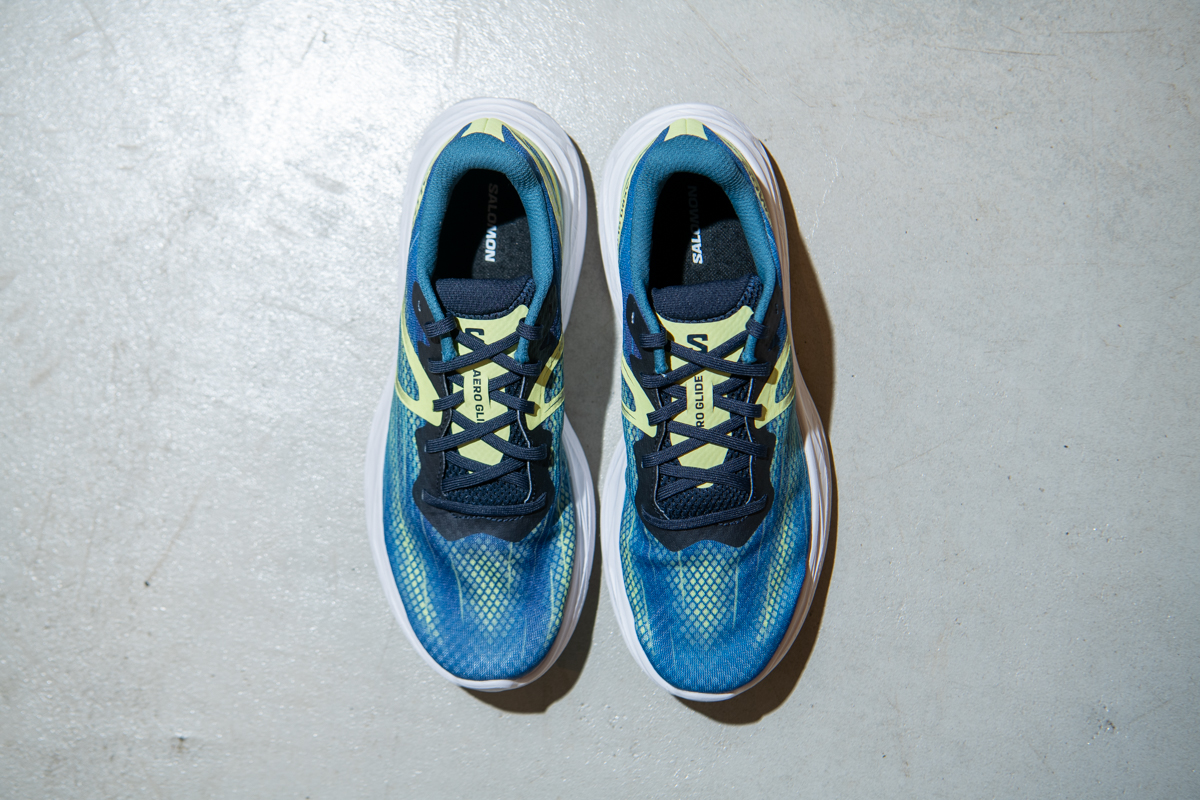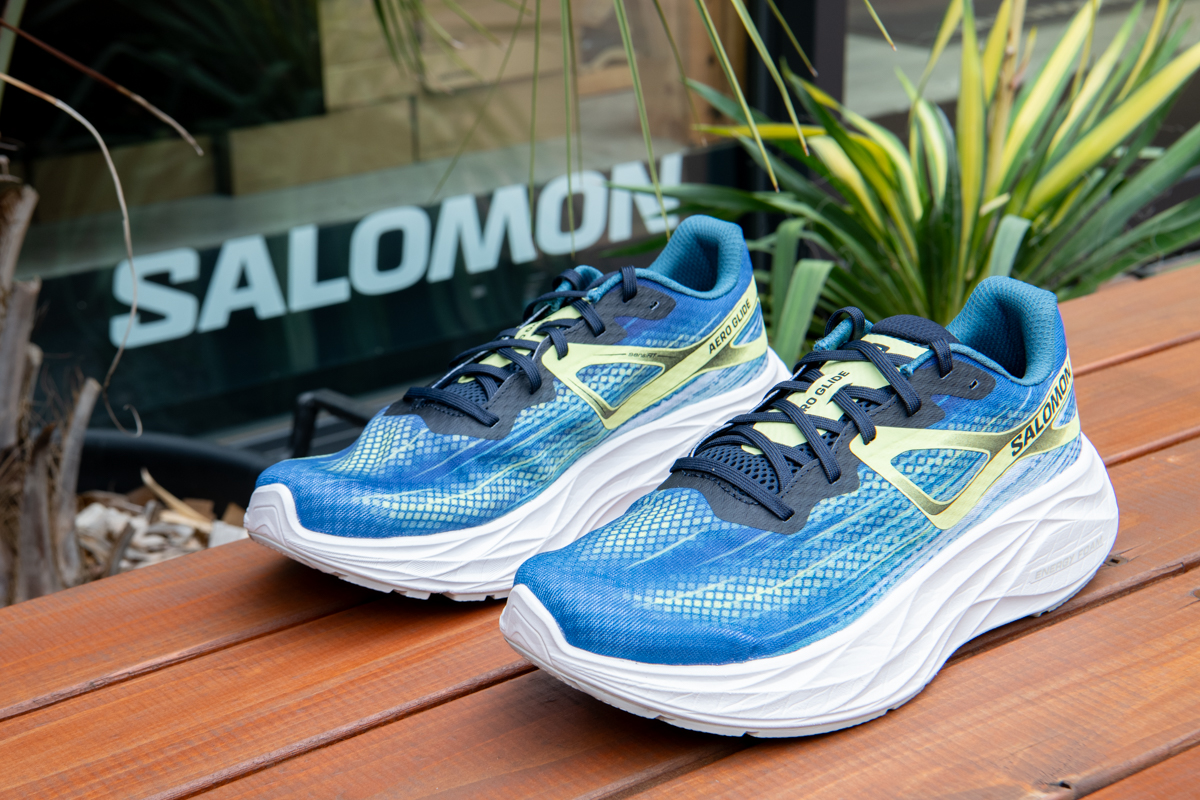 と語るのは、サロモンのイケメンMD山村 拓さん。山村さんが、GetNavi web読者を含めたランニング初心者にすすめてくれたのは、「エアロ グライド」というモデル。厚底をトレンドも踏まえ、真上から見ると接地面のソールが広くせり出したフォルムが印象的である。