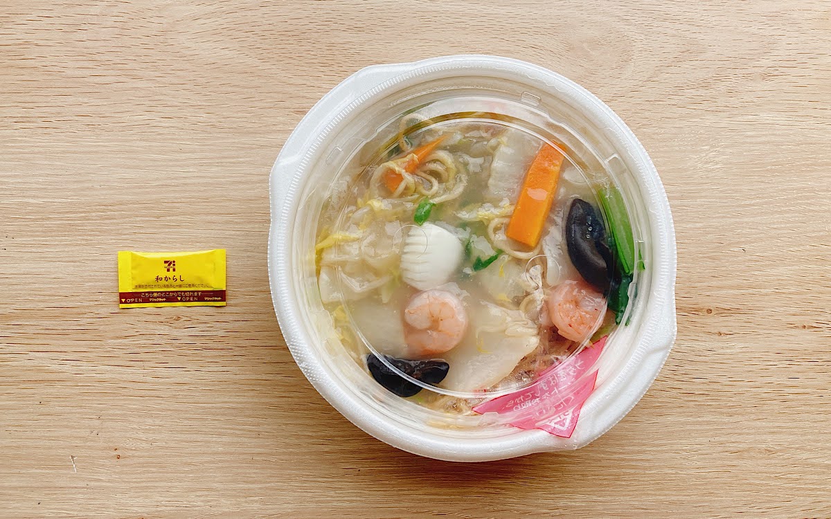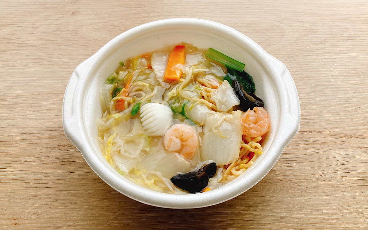 同商品には海老やいかに加えて、白菜や人参といった野菜、きくらげがたっぷり入っています。「海鮮塩あんかけやきそば」というだけあって、海老もプリプリでしっかり存在感を発揮。味の変化を楽しみつつ最後まで同商品を堪能することができました。