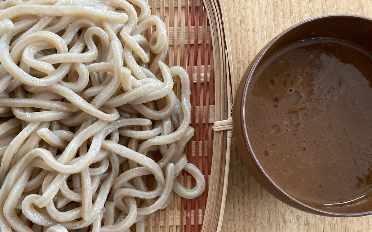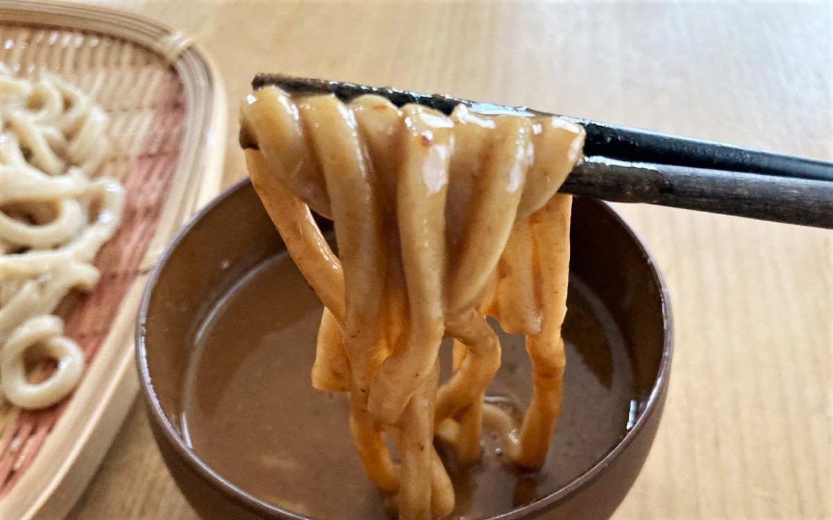 こちらの商品、麺の太さにもビックリしましたが、なんといっても特徴的なのはまるでポタージュのようなとろみの濃厚スープです。器に入れると“ボタボタ”と音がするくらいのとろみ感。器に開けるのと同時にカツオ出汁の良い香りが漂ってきました。