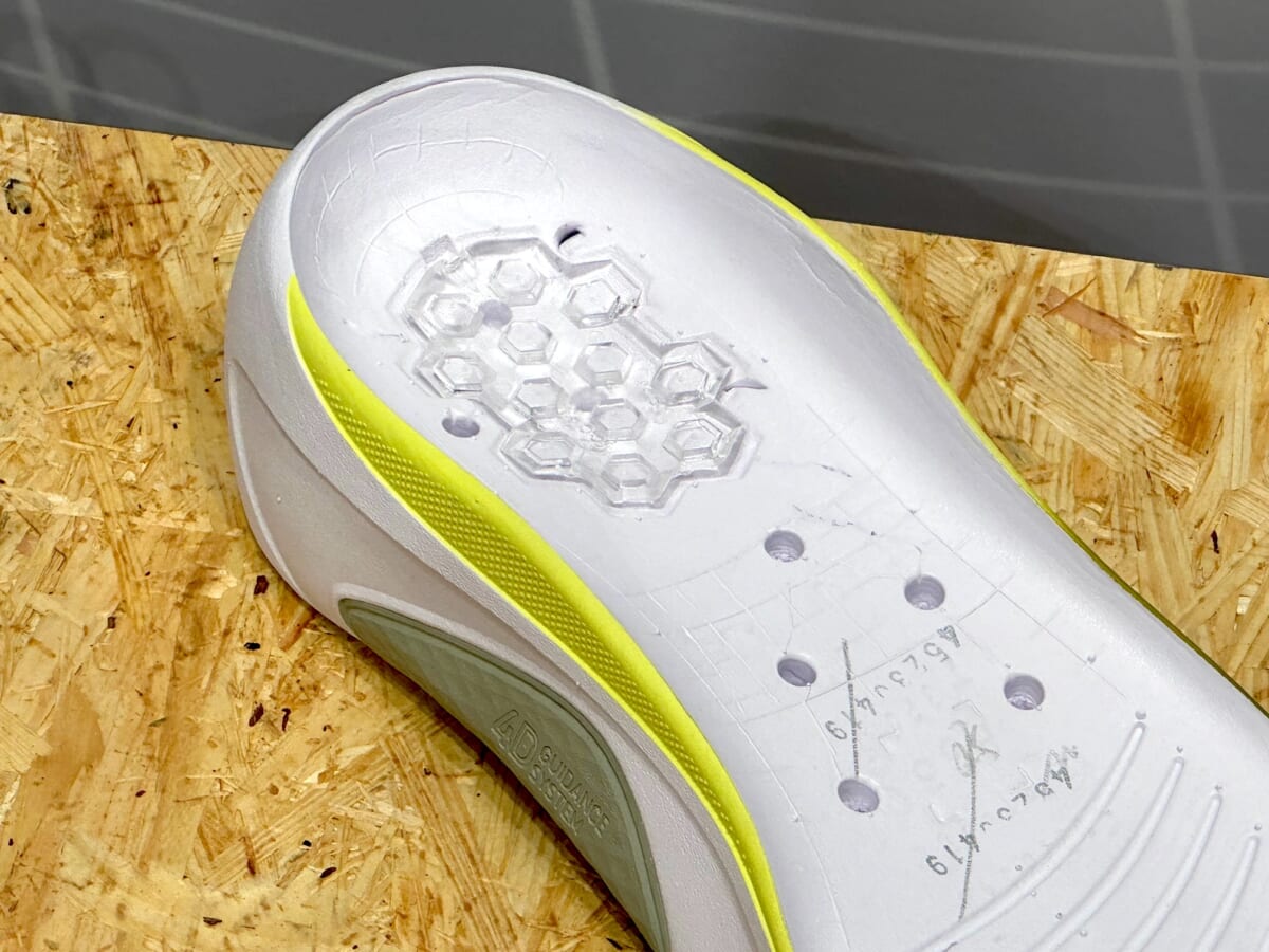 「今回は硬いゲルをどこにも使っていません。それを実現したのが、長距離を分析してランニングフォームの変化を分析して一つひとつ形状を変えたこと。社外の方にも10km走っていただいたところ『走る前よりも走った後の方が快適性を感じる』と、コメントをいただきました。コンセプトを説明していない方にそう言われて、すごく自信につながった」(高増氏)