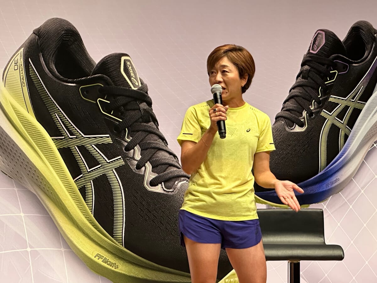 今回は特別ゲストに、女子マラソン日本記録・アジア記録保持者で、アテネオリンピック金メダリストの野口みずきさんも登壇。7年前に現役を引退後も、毎日10kmほど走っていたそうですが、ゲルカヤノ 30を履いてからは最低でも13kmから15kmは走っているとのこと。