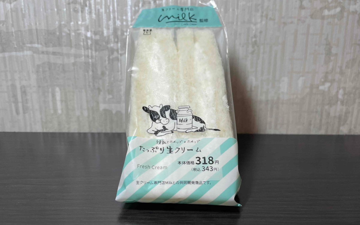 ローソンと生クリーム専門店MILKがコラボする「Uchi Café×Milk」シリーズ。第7回目となる人気のシリーズですが、今回は柔らかいサンドイッチに北海道産生クリーム使用のホイップを挟んだ「MILK監修 たっぷり生クリームサンド」(343円/税込)を紹介。フルーツに頼ることなく、生クリームは主役になれたのでしょうか。結果を確かめるべく、さっそく購入してみました。