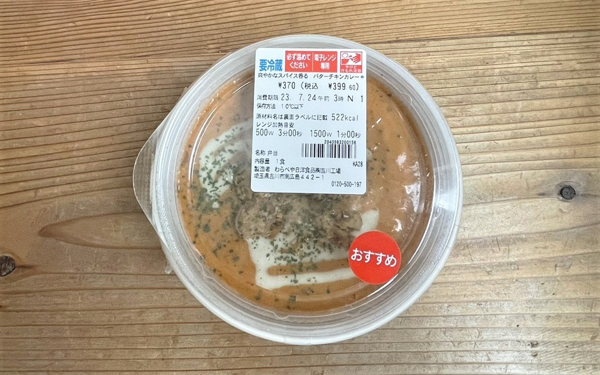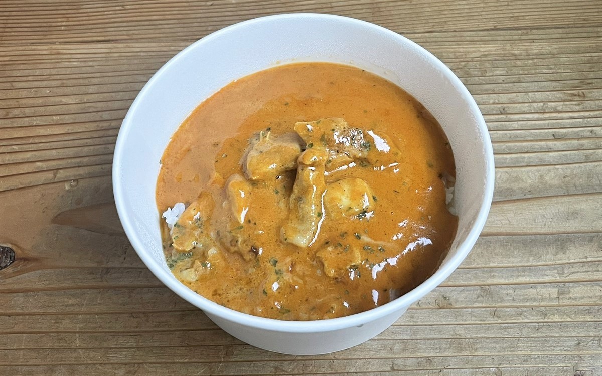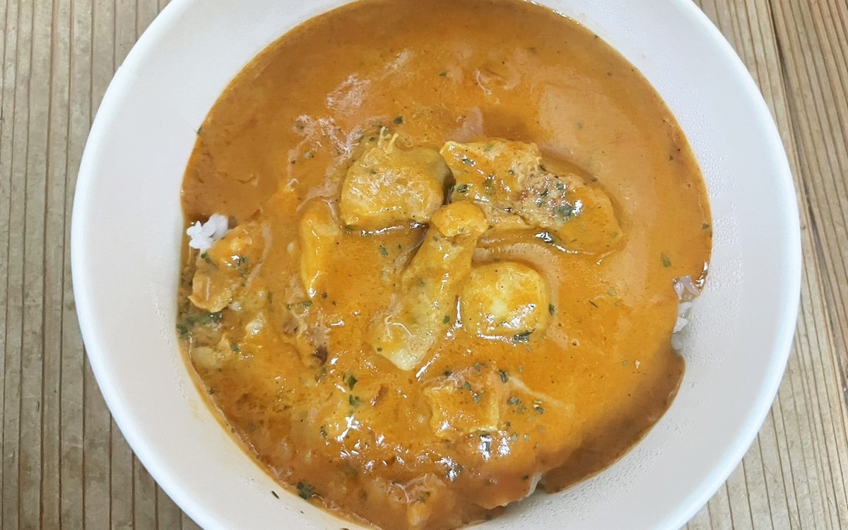日本でよく食べられているカレーとは違う、スパイスの味わいが魅力のバターチキンカレー。カレーの本場インドが発祥で、鶏肉とバターや生クリームを使って作られます。今回紹介する「爽やかなスパイス香る バターチキンカレー」(399円/税込)も、スパイスが決め手の本格的なカレーです。さっそく味わっていきましょう。