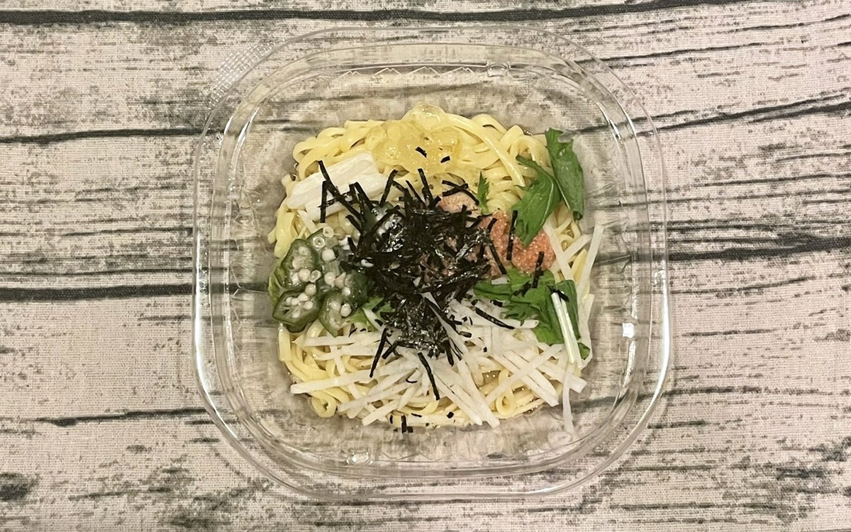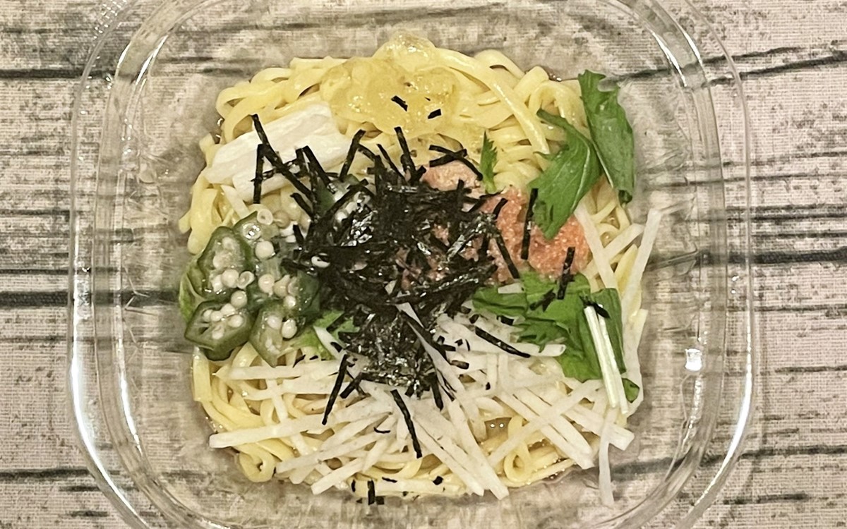 スープと具材を麺と混ぜて食べる同商品は、涼し気な見た目もGOOD。オクラや山芋が入っており、混ぜるとネバネバ感が出てくるのも食欲をそそります。