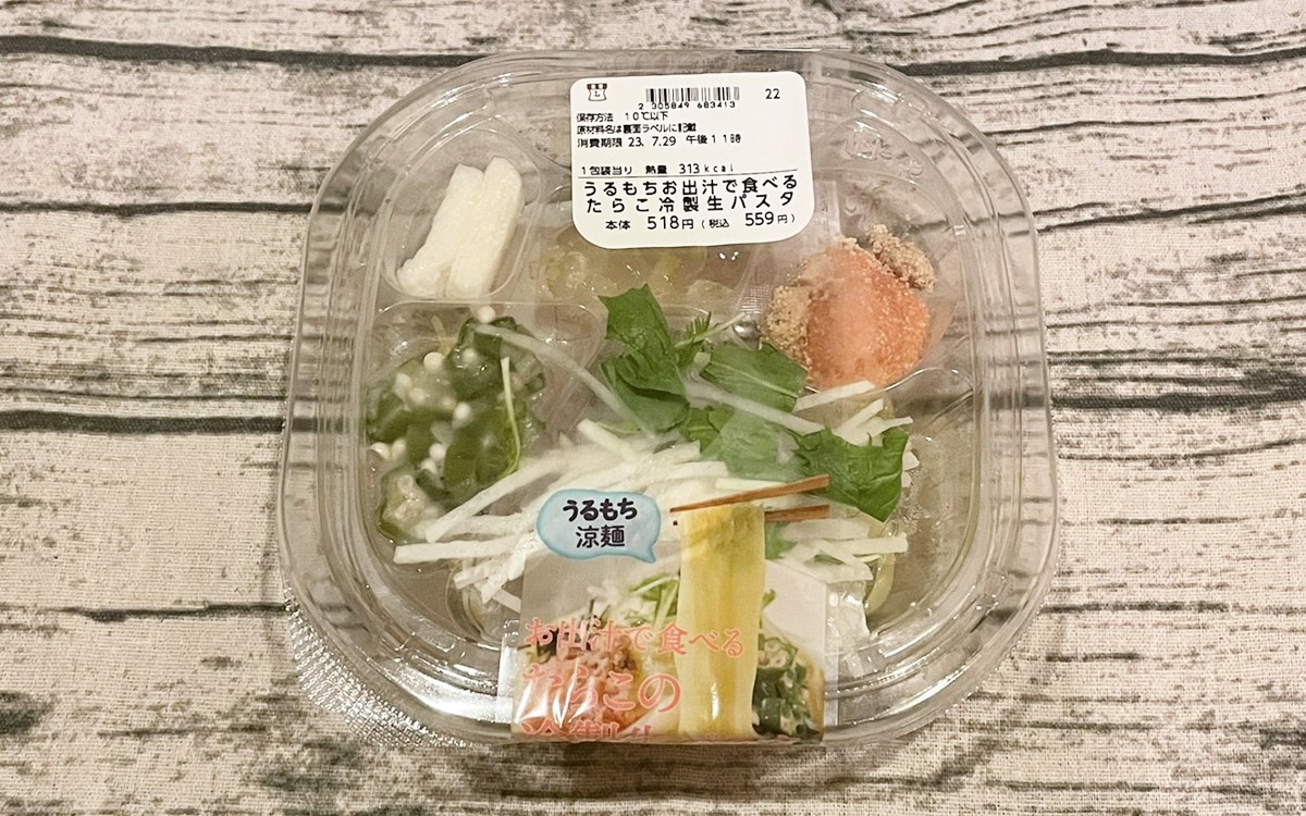 つるっと食べられる冷たい麺類は、暑さで食欲がなくなりがちな夏にもぴったり。コンビニではさまざまな種類の麺類が発売されていますが、今回は少し珍しい「うるもち! お出汁で食べるたらこの冷製生パスタ」を紹介します。