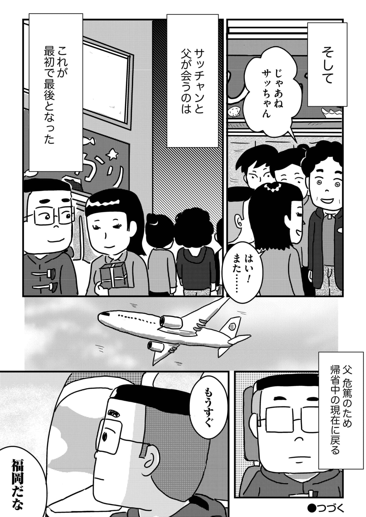 お父ちゃん危篤の報せを聞き、福岡に向かうじろうちゃん。機内の中で思うは、かつてお父ちゃんが持っていた破天荒な夢のお話--。