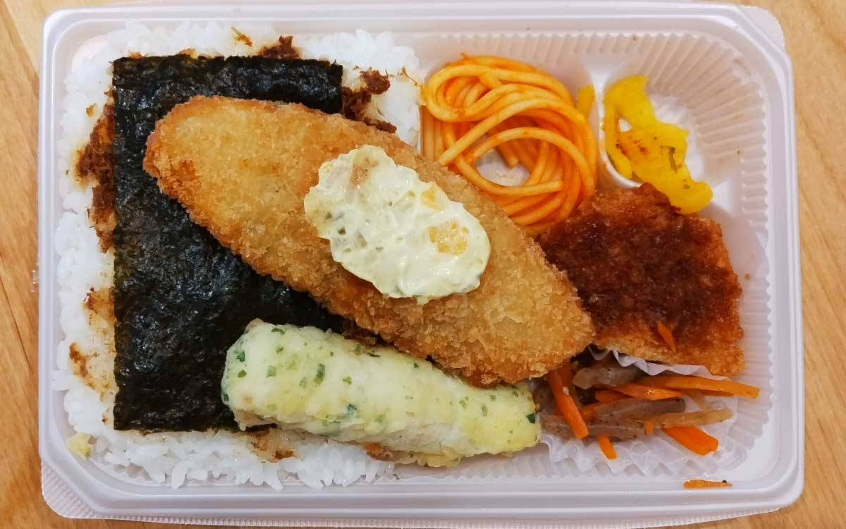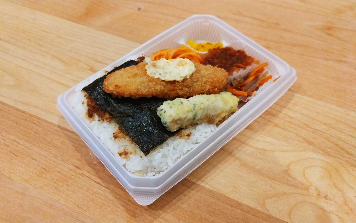 まずは存在を主張している白身フライからチェック。白身魚の風味と玉ねぎ入りタルタルソースとの相性も抜群で、安定したおいしさです。ちくわ磯辺天ぷらも、風味が良く旨みもあってGOOD。ポテトコロッケはほくほくとしているだけでなく、ソースがしっかりと染み込んで食欲をビシビシと刺激してきました。そして驚いたのが醤油おかかとご飯の相性です。ご飯が醤油おかかの旨みを引き立ててくれて、お箸が止まりません。