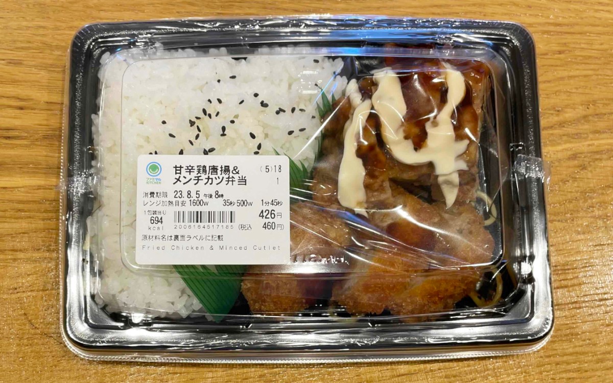 メンチカツと唐揚げが同時に楽しめる「甘辛鶏唐揚&メンチカツ弁当」(460円/税込)がファミリーマートから登場。揚げ物の代表ともいえる唐揚げと、ジューシーな味わいのメンチカツが一度に味わえる弁当は珍しいですよね。一体どのような味わいになっているのか、さっそく購入してみました。