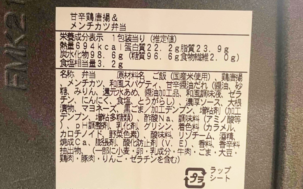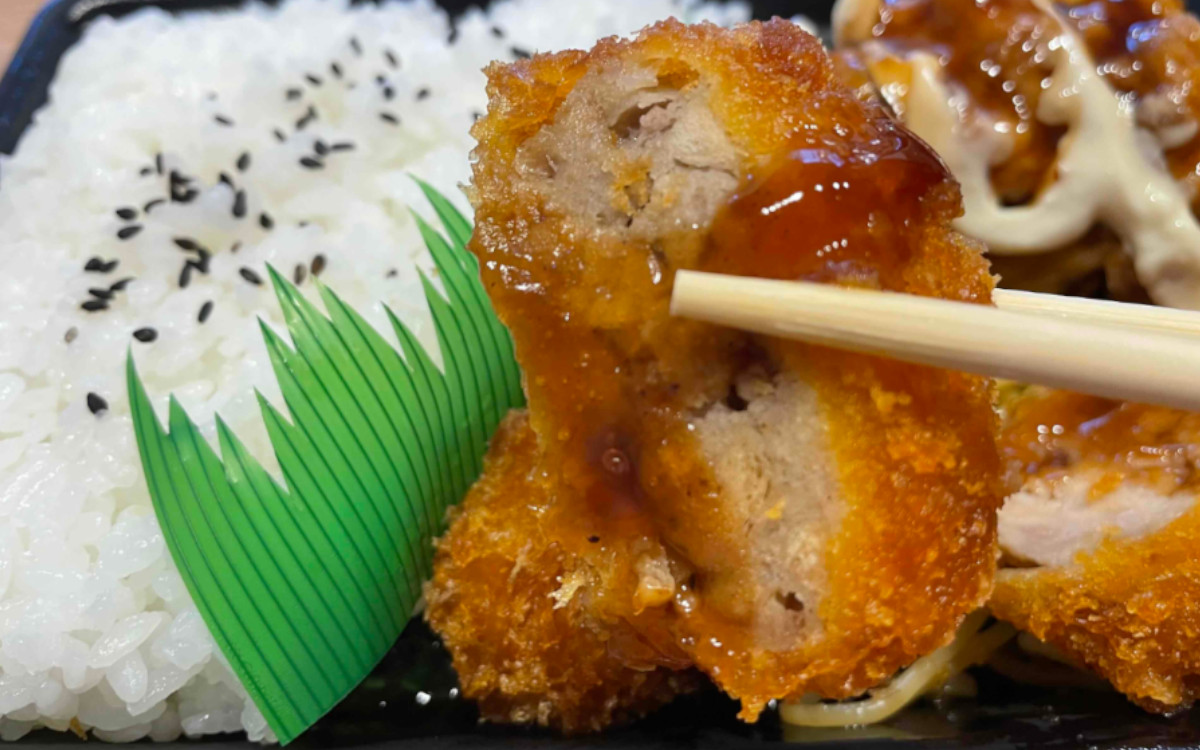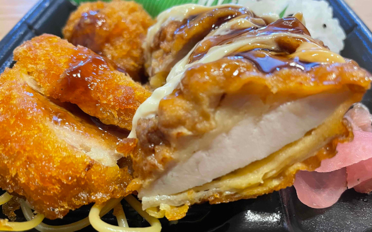 「甘辛鶏唐揚&メンチカツ弁当」では、そんなリッチな気分を味わえるメンチカツだけではなく甘辛いソースがかかった唐揚げも楽しめます。唐揚げと甘辛ソースは、間違いない組み合わせですよね。名前を聞いただけで食欲がそそられますが、じっくりレビューしていきましょう。