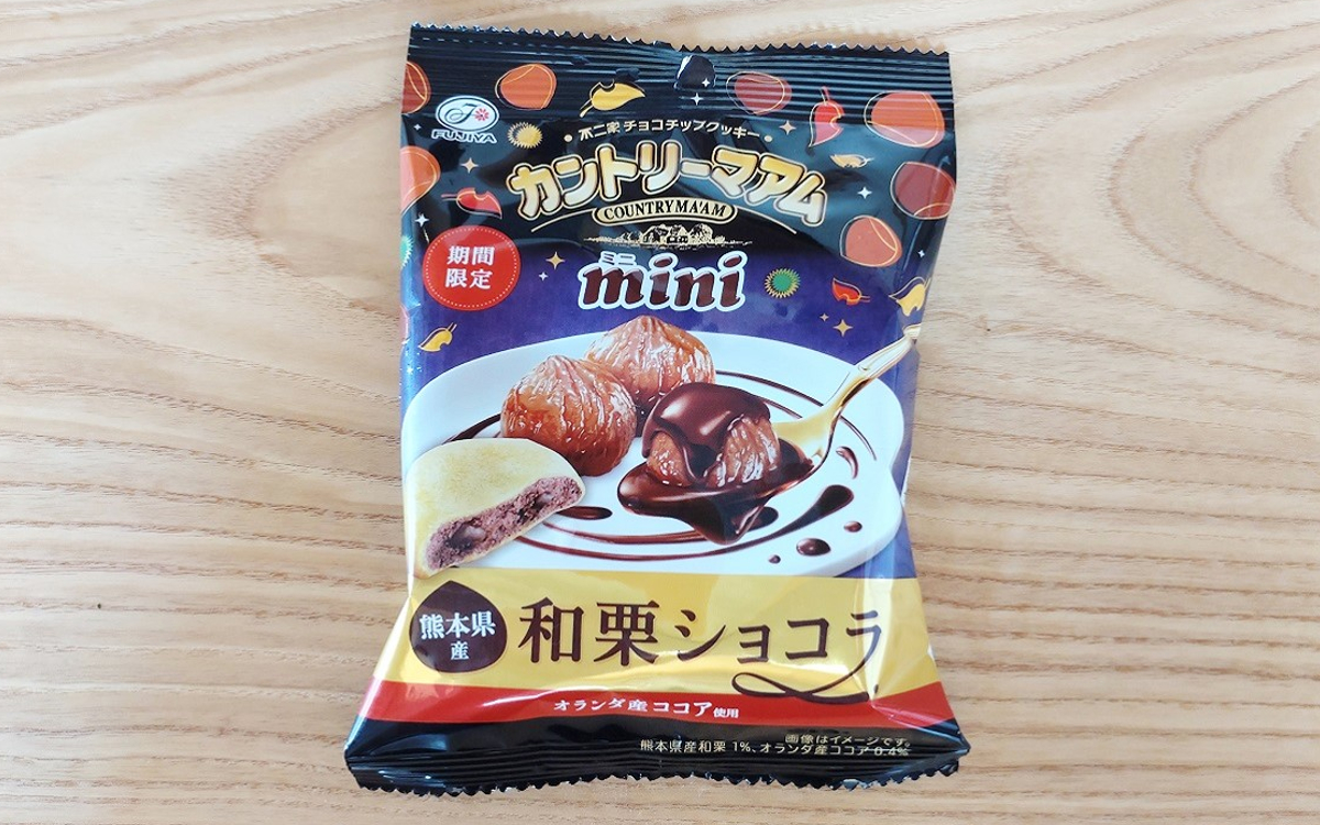 日中はまだまだ暑くても、朝晩の蒸し暑さが和らぎ秋の気配が近づいてくると売り出されるのが“秋の味覚”スイーツですよね。中でもモンブランやマロングラッセなど、“栗”を使ったスイーツは秋らしさ満開。毎年この季節が近づくと、「今年はどんな栗スイーツが発売されるかな?」と楽しみで仕方ありません。そんな中、大好きな「カントリーマアム」から「カントリーマアムミニ(和栗ショコラ)」(108円/税込)が発売されるとあって、テンションアップ! しかも熊本県産の和栗を使用しているとのこと。熊本県と言えば日本で第2位の栗の生産地です。これはかなり期待度“大”ですね。