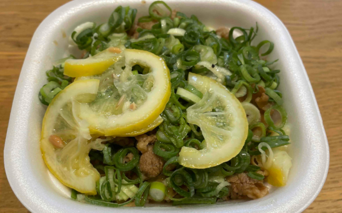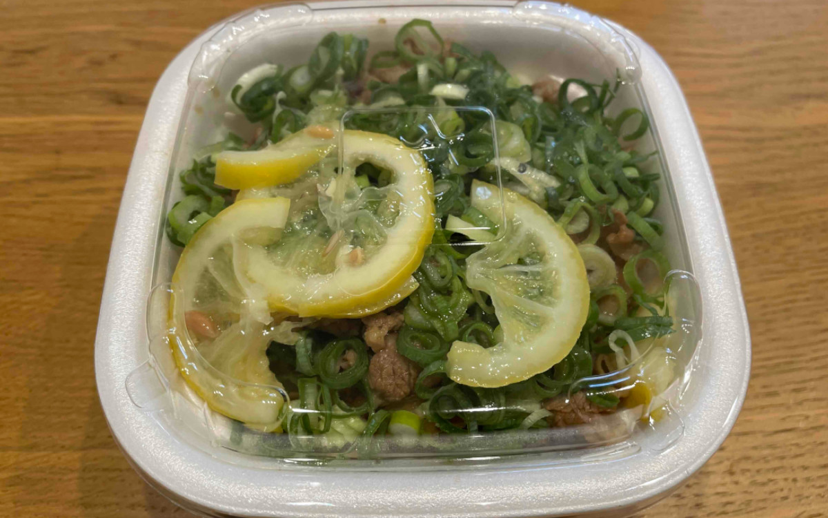 牛丼の上にたっぷりの青ねぎとレモンがトッピングされた「ねぎ塩レモン牛丼」(580円/税込)がすき家から登場。重たいイメージのある牛丼もレモンをトッピングすれば、ぺろりと完食できるのではないでしょうか。一体どのような味わいになっているのか、さっそく購入してみました。