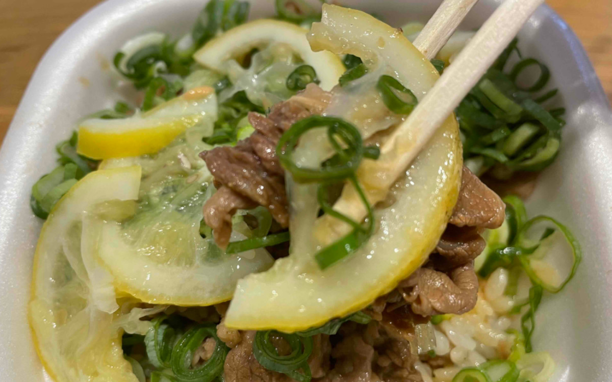 豪快に、ごはん・牛肉・ねぎ・レモンを1口で味わってみます。まず感じたのはレモンの酸味で、その後にねぎの風味とシャキシャキした歯ごたえを感じました。牛肉の重たさを感じることはなく、さっぱりとした味わい。一方で、レモンの皮部分には苦味も感じられます。嫌な苦味ではなく、癖になる苦味でした。子どもには苦味が強いかも知れませんが、さんまの内臓といった苦味が好きな人であれば気に入るのではないでしょうか。