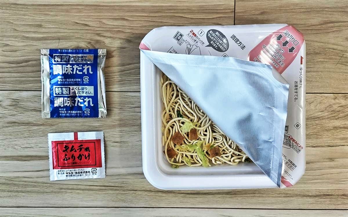 カップ麺に別添付されている小袋は2種類でかやくはすでに入っていました。まずはお湯を注いで、調味だれをフタの上で温めておきます。4分待った後、袋に書かれた説明通りによくしぼり出しながらINすると豚骨の風味が漂ってきました。