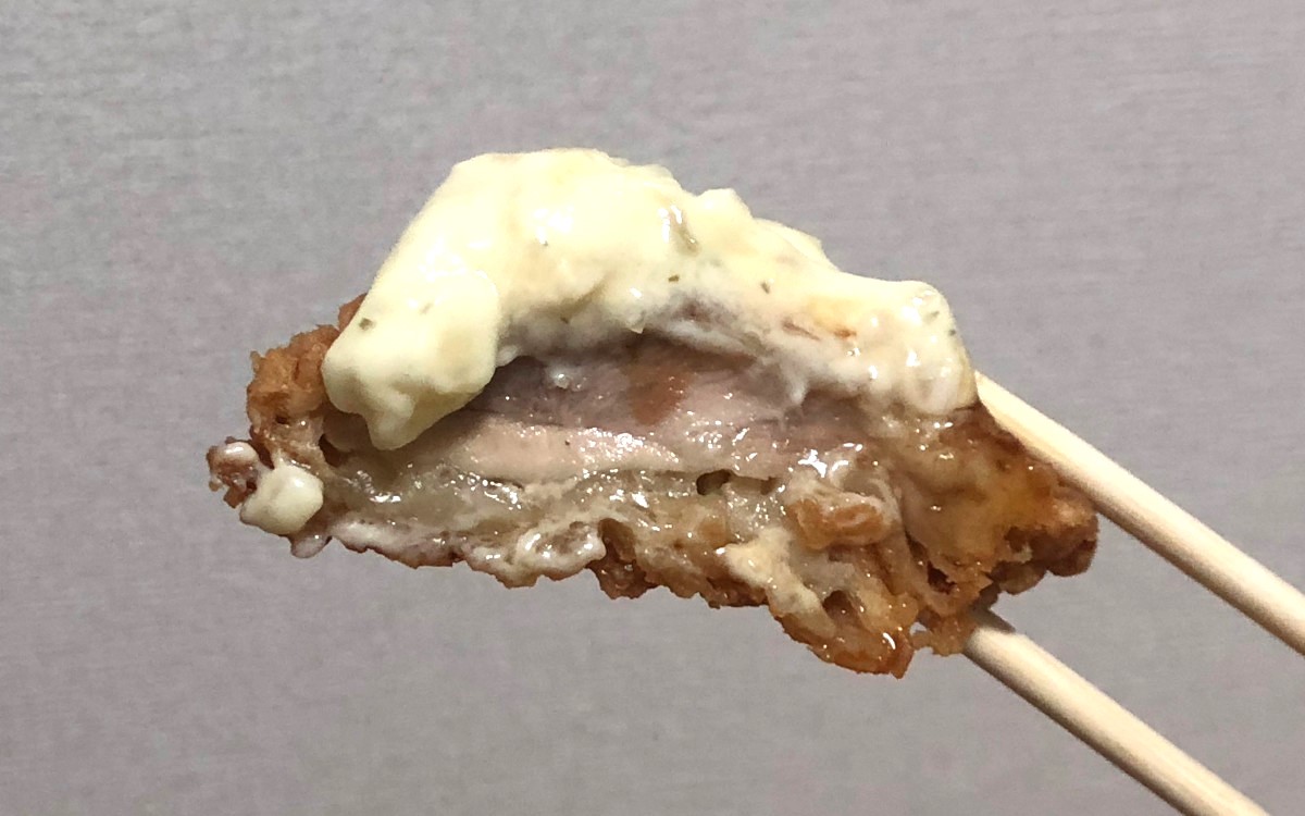 大ぶりの揚げ鶏はお箸で切れるほどの柔らかさで、一口食べるとジューシーな鶏の旨みとまろやかなタルタルソース、甘酢のハーモニーが口いっぱいに広がりました。卵感の強いタルタルソースには、柔らかいながらも食感を残した玉ねぎが入っていてチキンとの相性もGOOD。衣は柔らかめで、タルタルソースのクリーミーさとマッチしていました。
