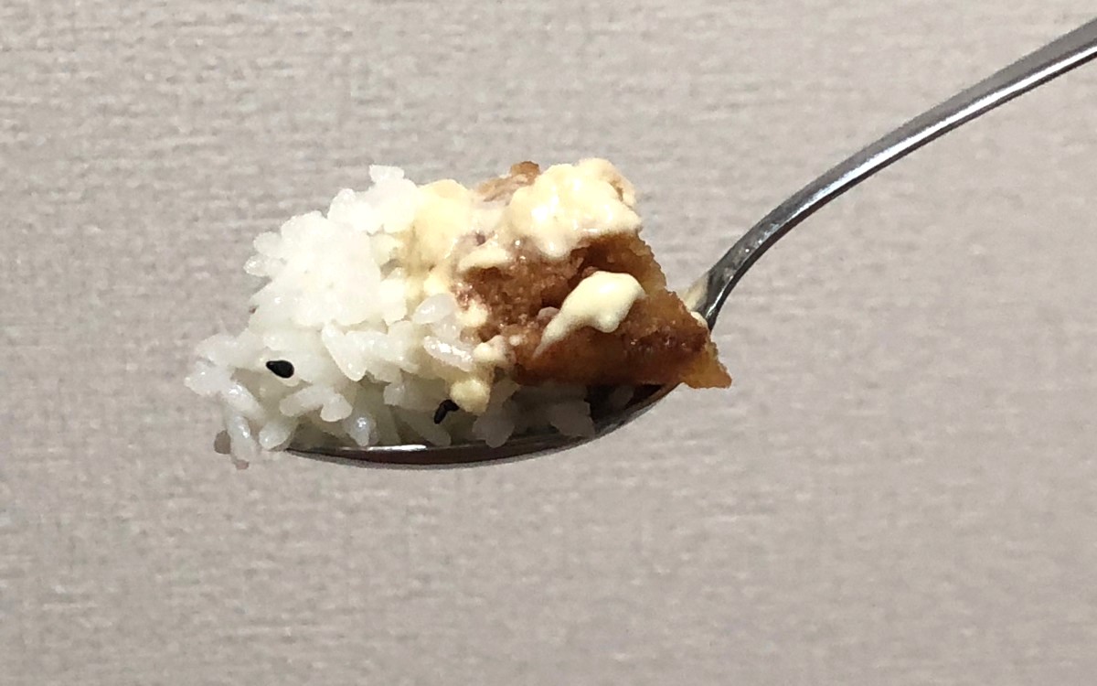 次はつやつやのご飯と一緒にいただきます。タルタルソースが多めにかかっているので、お米との相性もバッチリ。ご飯にかかっている胡麻が、チキン南蛮にほんのり香ばしさをプラスしてくれます。