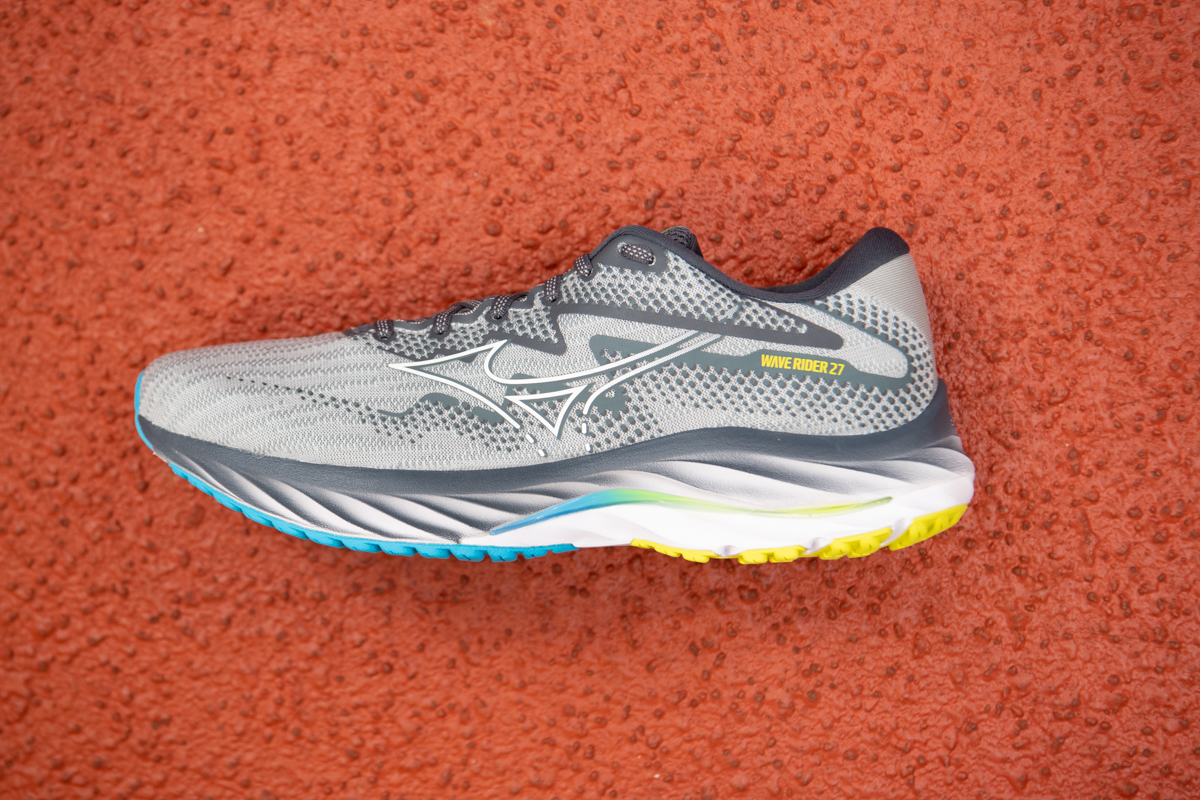 ウエーブライダー27は、前年にフルモデルチェンジされた26の新機能の数々を発展的に継承するモデルだ。26で刷新されたミッドソールの「ミズノエナジー」は、それまで(25)よりも2㎜厚くなったにもかかわらず、より軽く、より軟らかになり、着地衝撃の吸収は20%、反発性は30%向上。これは当然、27でも継承している。