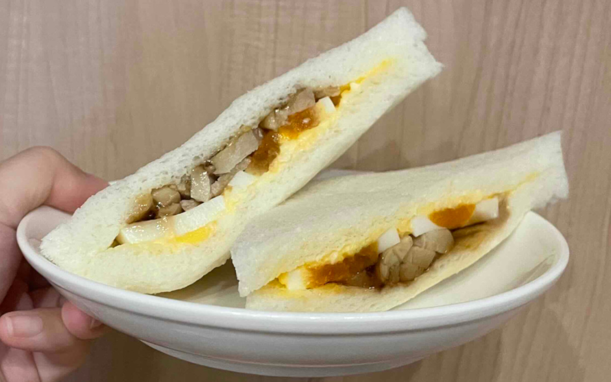 たまごに関しては、たまごサラダだけでなくゆで玉子のスライスを一緒にサンド。照焼チキン、ゆで卵スライス、たまごサラダの順にサンドされておりボリュームたっぷりのサンドイッチに仕上がっています。