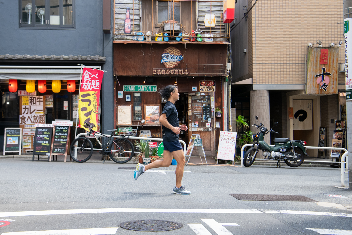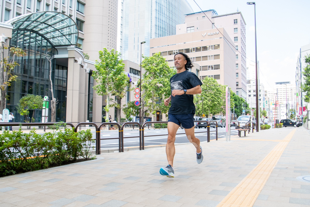 脚の向くまま、気の向くまま走ったら自然にペースが上がり、1㎞を6分10秒。あくまで筆者の走力での話だが、シューズ設計で想定されたドンピシャのペースでもある。なるほど初心者からマラソン挑戦者まで、ウエーブライダー27の対応レンジの厚さに納得。