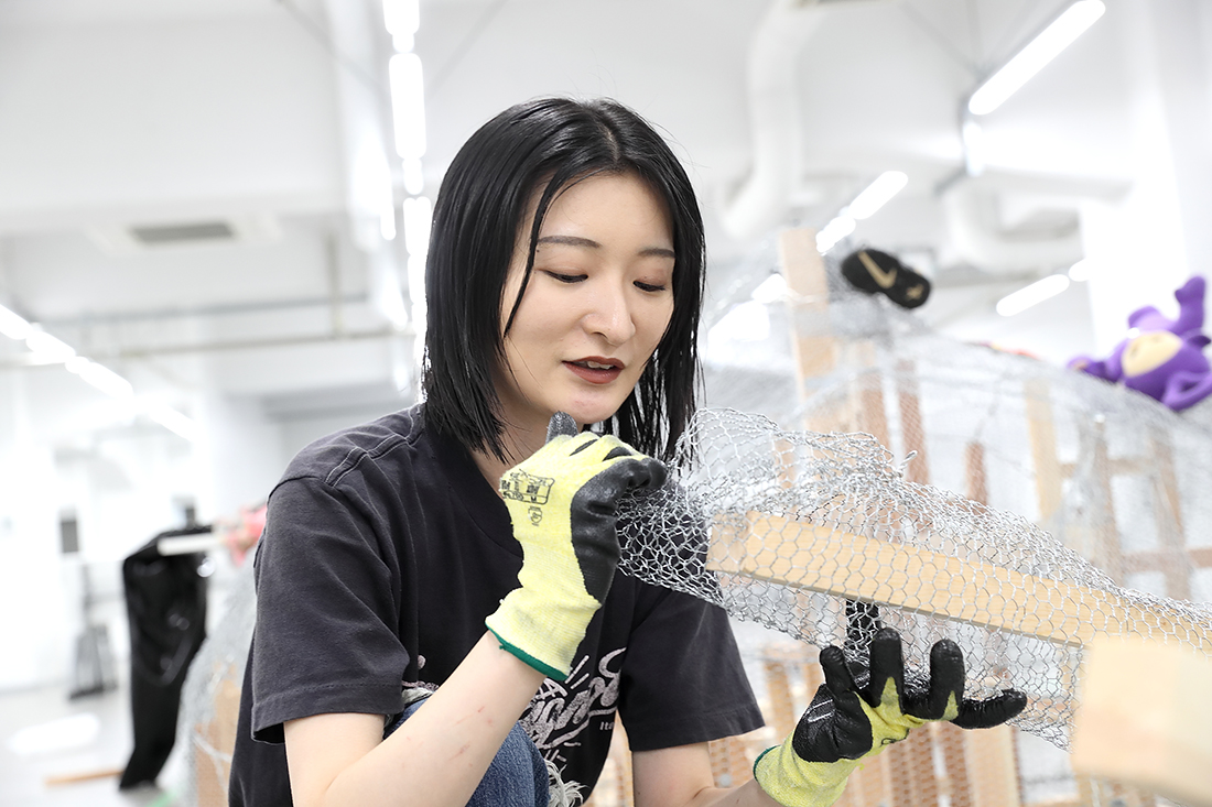 ──使ったことがない素材や工具を初めて使い、挑む姿勢、思いきりがありますね。それに、初めてとは思えないほど、金網の曲線がとてもきれいです。