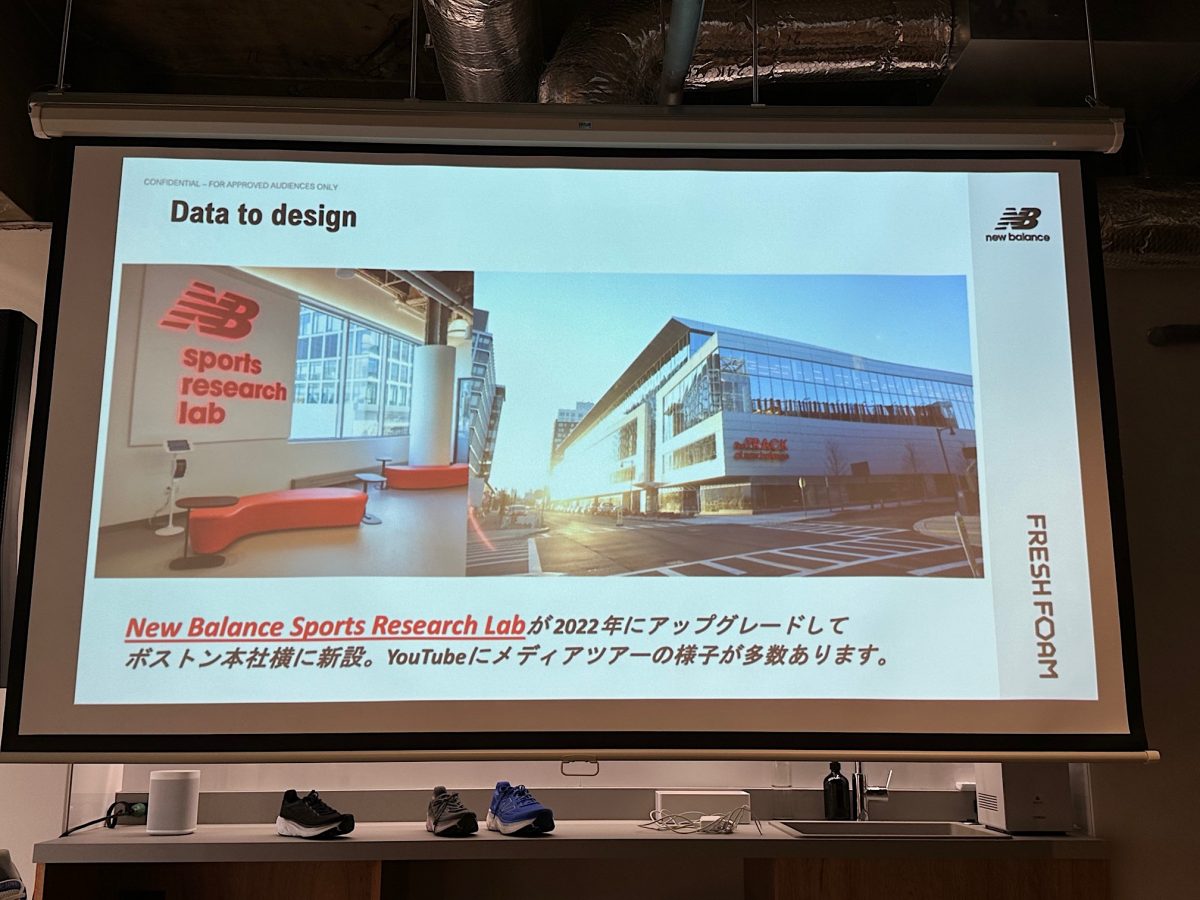 もちろん最新の機材を用いていますが、一番のポイントはトラックがすぐ横に併設されているので、開発したモノをその場でテストしながらデータが取れる。より開発のスピード感も上がっています。もちろんランニングカテゴリーのフットウェア以外にもアパレル。そしてフットボール、バスケットボール、ベースボールなど、ありとあらゆる競技のデータがここで取れるようになっていますので、今後のニューバランスのスポーツカテゴリーはかなりレベルアップしてくると思います。期待してください」(武田氏)