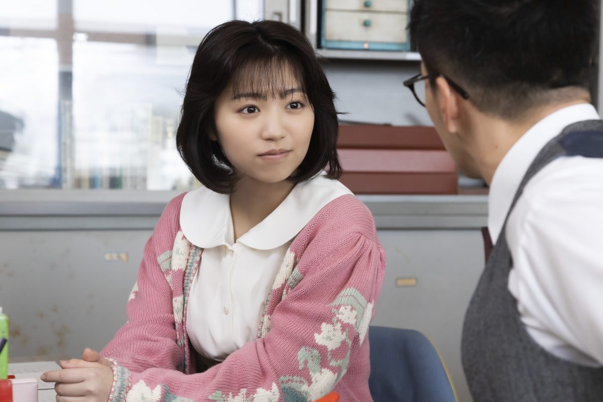 大原 80年代の物語なので、髪形を聖子ちゃんカット風にしたり、服装や小道具もすべて昭和っぽく用意していただき、言葉遣いや所作もその時代に合わせるところから役を作っていきました。それと比留川愛先生は、先生らしくない、ちょっと頼りないキャラクターなんです。市原さんのまくし立てるような早口の芝居が印象的だったので、対照的にゆったりした口調のヒロインになるように作っていきました。二人の噛み合わない感じが、この作品に合っているんじゃないかなと思ったので。