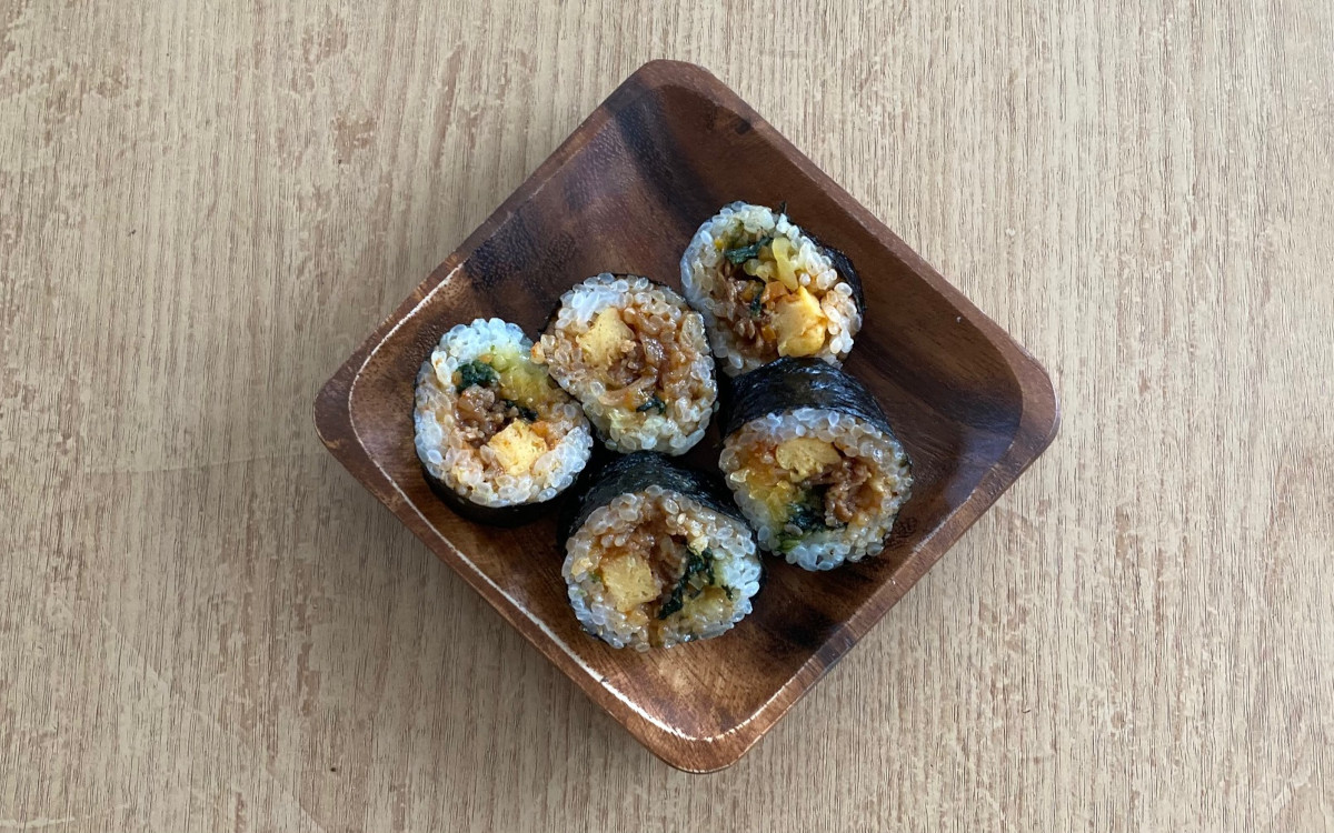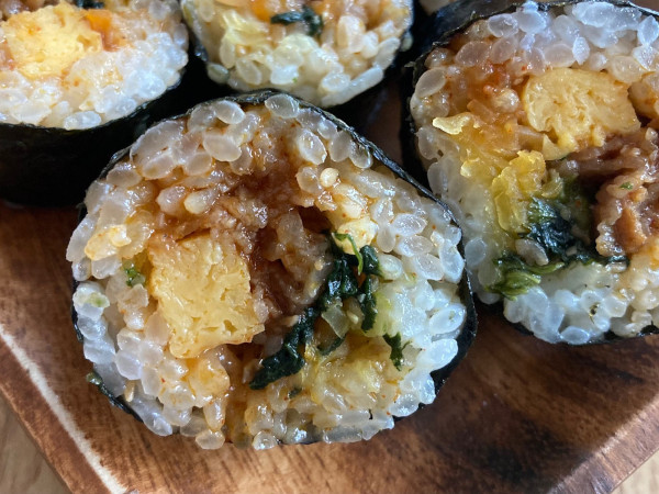 食べたあとに注意書きを見て「しまった!」と思い、時間を置いて食べてみると全くの別物キンパに。牛肉と甘辛ソースの旨味がしっかりと絡み合い、絶妙なバランスの美味しさでした。少し冷ますことで全体の味がしっくりとなじみ、具材1つ1つの風味がきちんと感じられます。